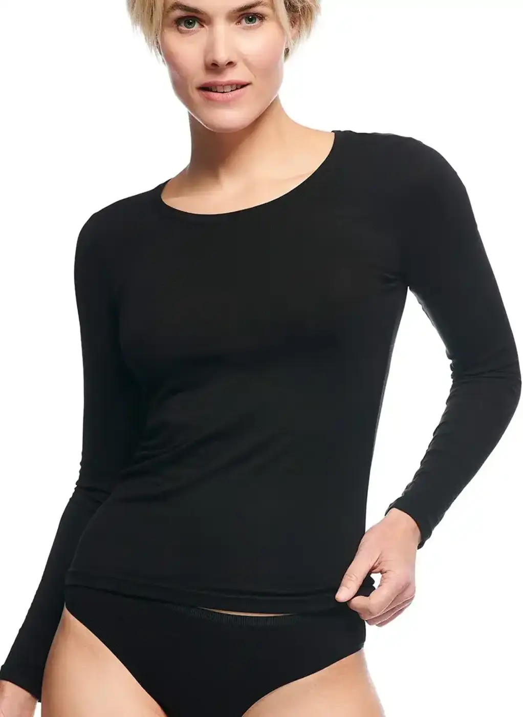 68% Bamboe Viscose, 28% Organisch katoen, 4% Elastaan, Fijne, zachte dames ondershirt lange mouw van Bamboo Basics. Bamboe is heerlijk comfortabel en lekker soepel, het is een stuk zachter dan katoen.