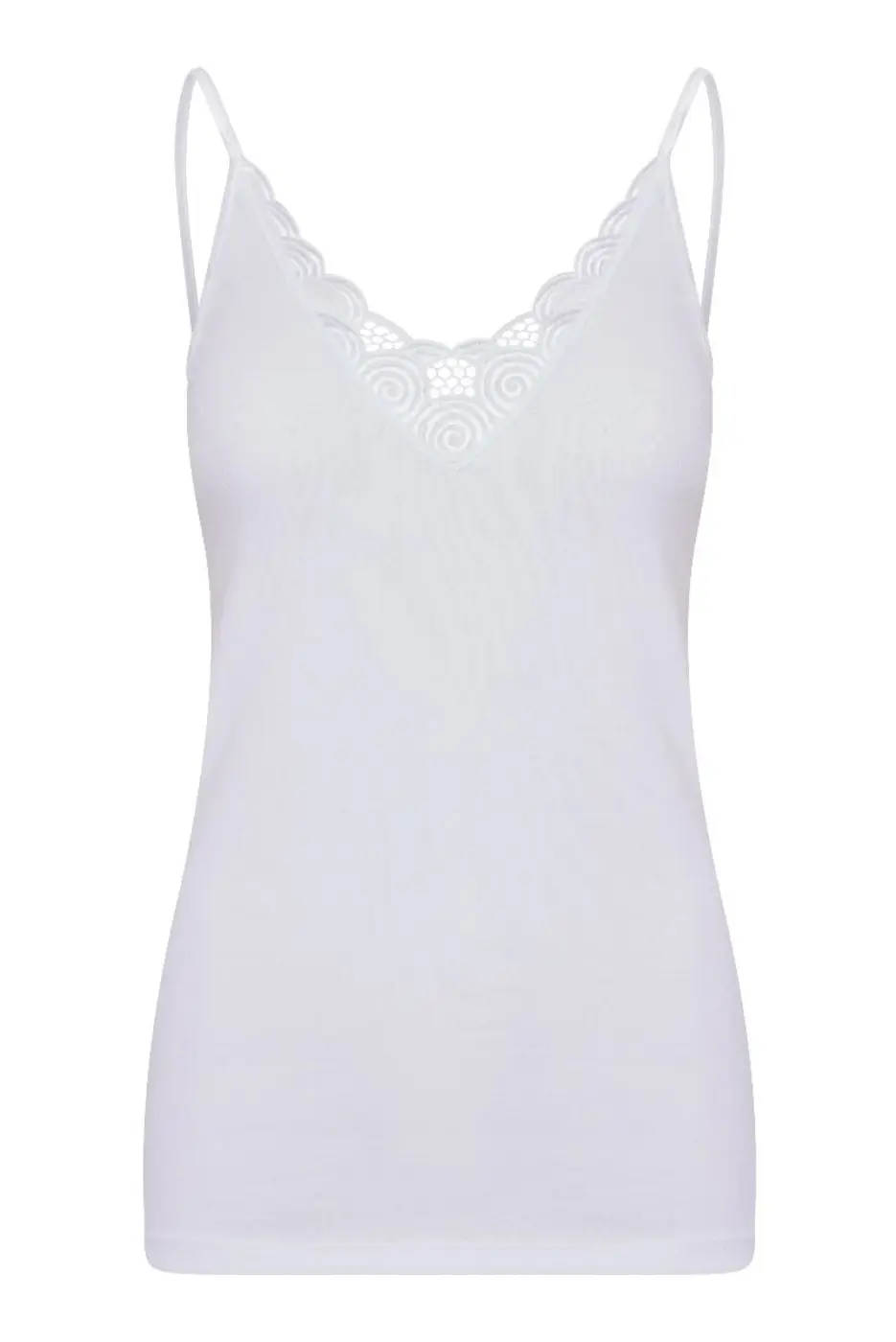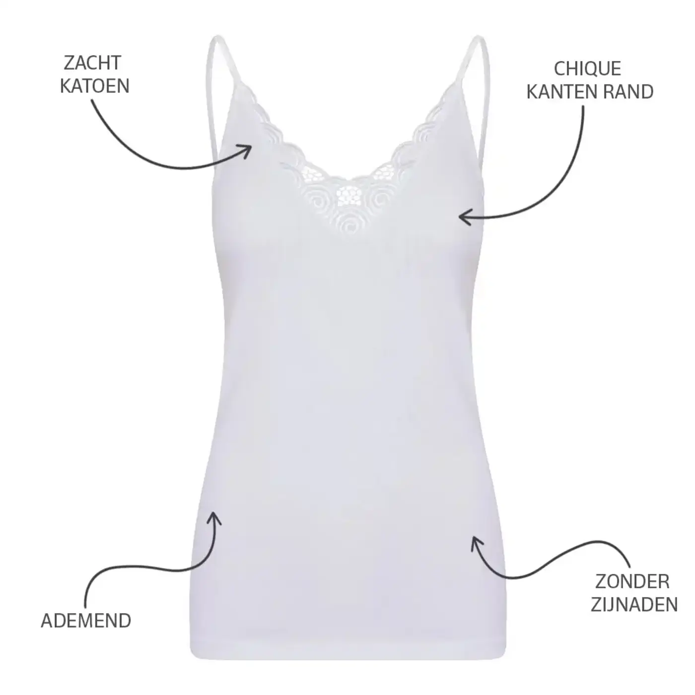- Met mooie brede katoenen kant en elastische spaghetti bandjes