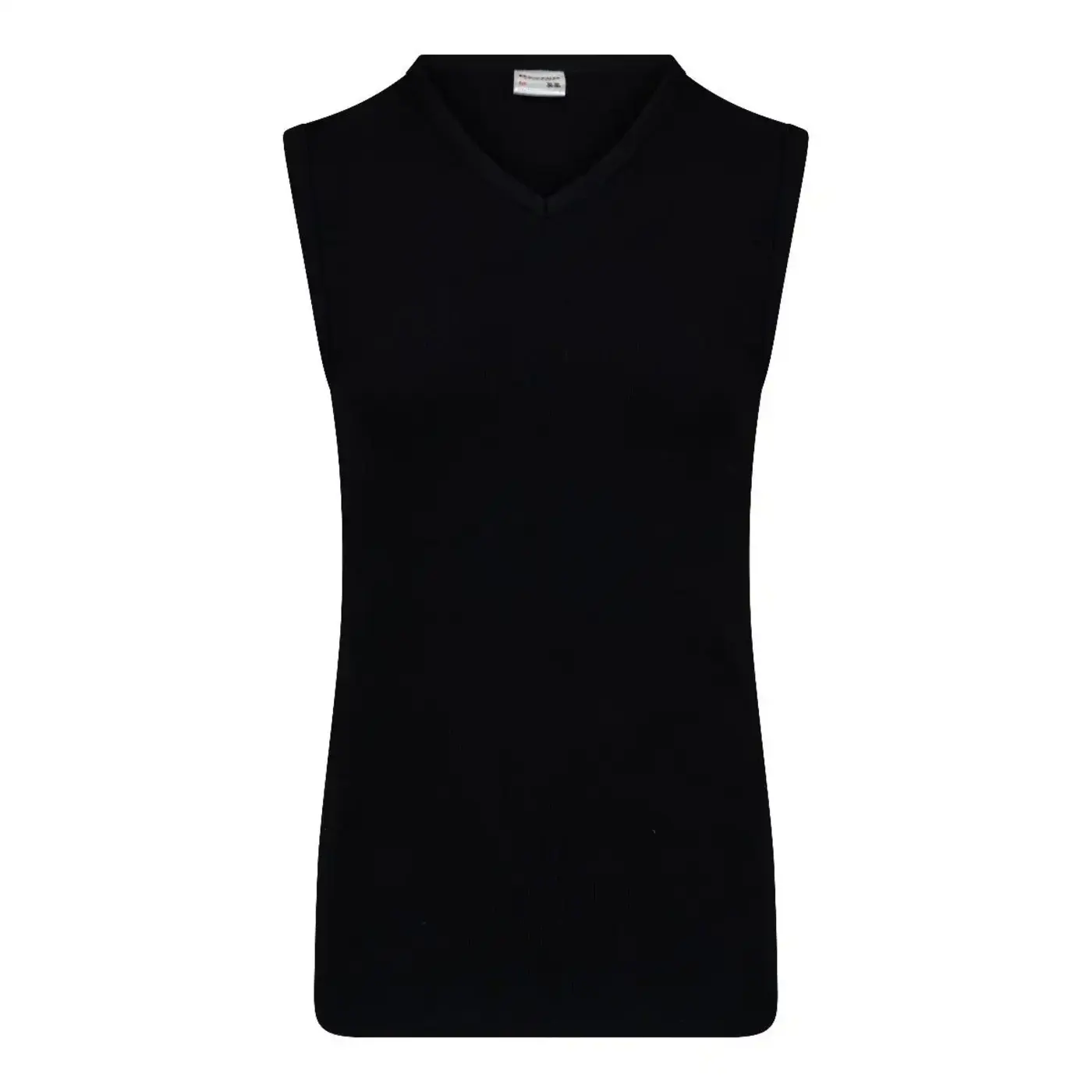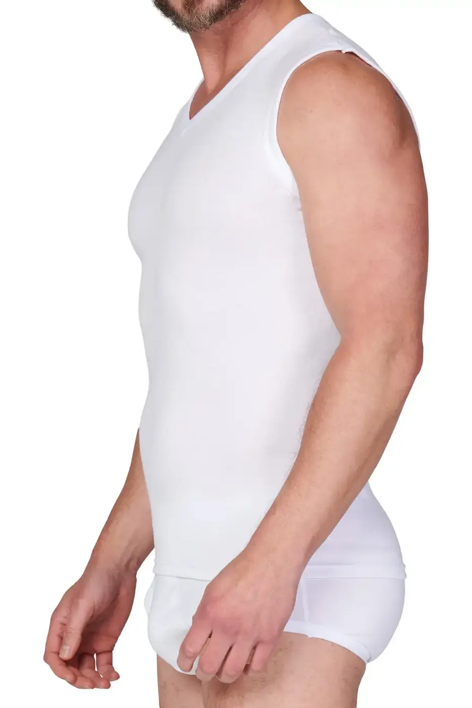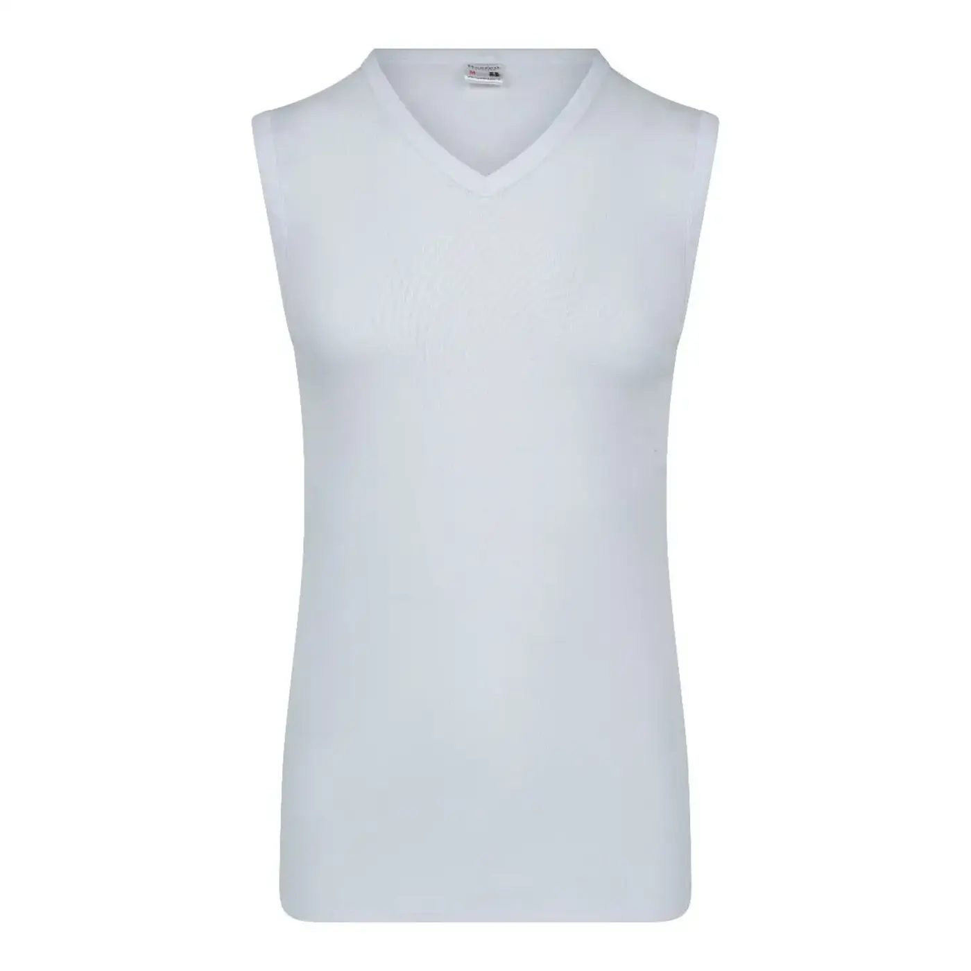 Artikelnr.: HR11-519Voel je goed in dit comfortabele mouwloos shirt van Beeren! Met 100% katoen dat goed aansluit zal dit altijd mooi om je lichaam zitten. Geen zorgen meer over te strakke of losse naden, deze zijn naadloos voor een perfecte fit. En met de warme wasbeurt kun je altijd rekenen op een frisse look. Kies voor het heren mouwloos shirt V-hals van Beeren en je bent verzekerd van optimaal comfort!