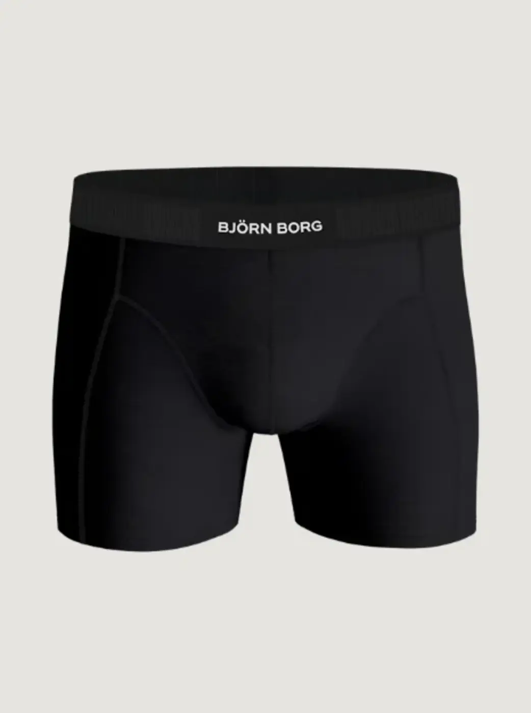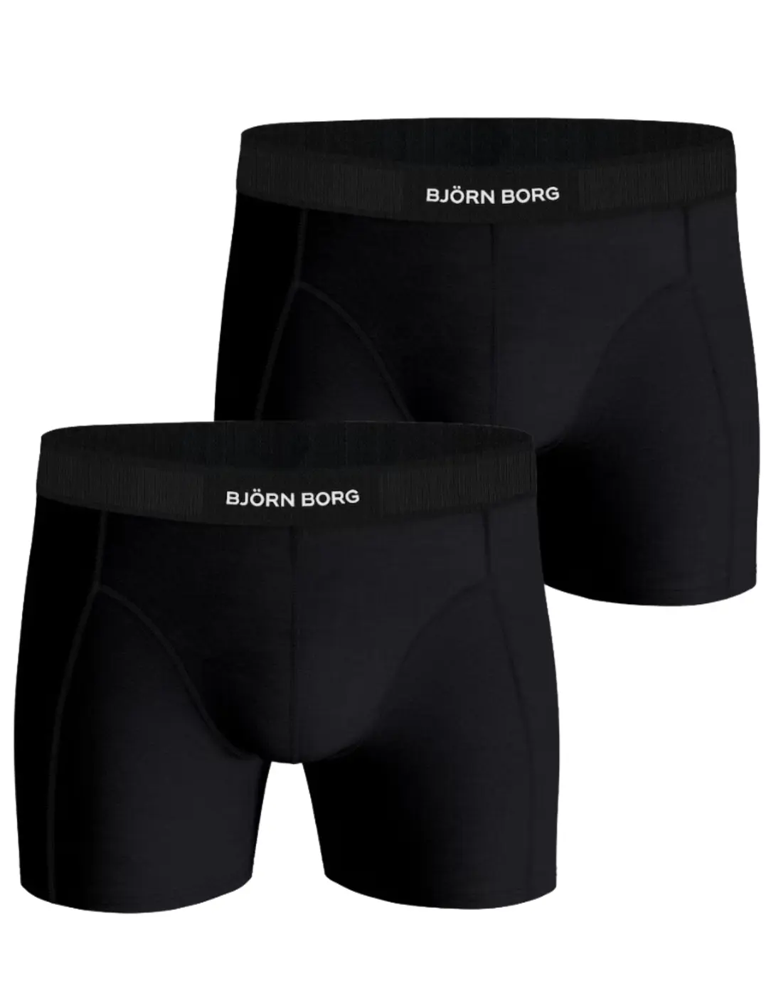 Artikelnr.: HR10002406-MP001De Björn Borg 2-pack heren boxers zijn gemaakt van Lyocell (tencel) vezels. Dit is een materiaal die vocht goed afvoert en je langdurig fris houdt. Daarnaast voelt lyocell superzacht aan en het wordt gemaakt van hout die afkomstig is uit bossen met het FSC-keurmerk, hierdoor zijn deze boxers duurzaam. De boxers hebben een dubbelgelaagd kruis, halflange pijpjes en zijn uitgevoerd in een halfhoog model. Ook heeft de boxer een elastische band met het bekende Björn Borg logo.