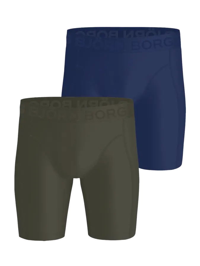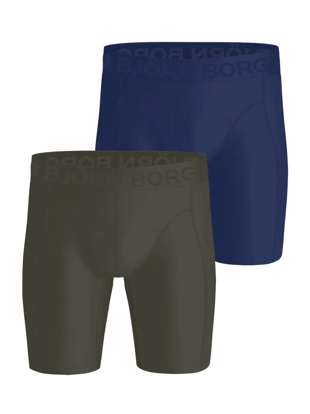 88% Polyester, 12% Elastaan, kwalitatief mooie en goede microfiber heren boxershorts van Bjorn Borg met lange pijpjes in een 2-pack