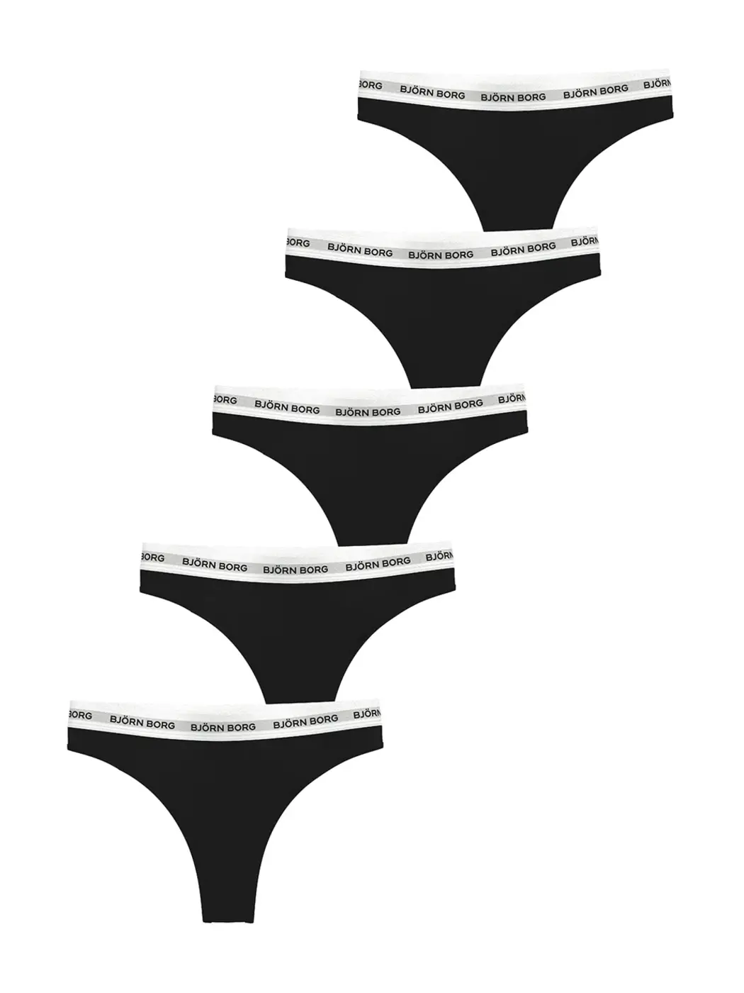 Artikelnr.: DS10004060-MP001De Björn Borg Logo String 5-pack voor dames is gemaakt van zachte katoenen stretchkwaliteit. Ze hebben een mid-rise taille, minimale rugdekking en een dunne en zachte elastische tailleband met logo voor extra comfort. Let op: Logo Thong heette voorheen Core Logo Thong.