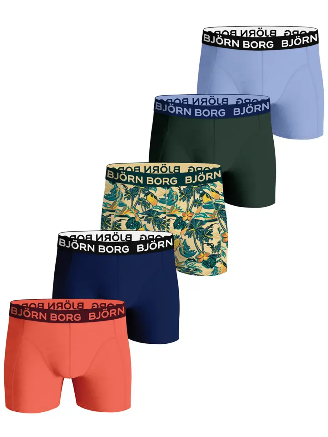 Artikelnr.: JS10003035-MP00195% Katoen | 5% elastaan, Elastische katoenen, jongens boxershorts 5-pack van Bjorn Borg in verschillende kleuren en printen