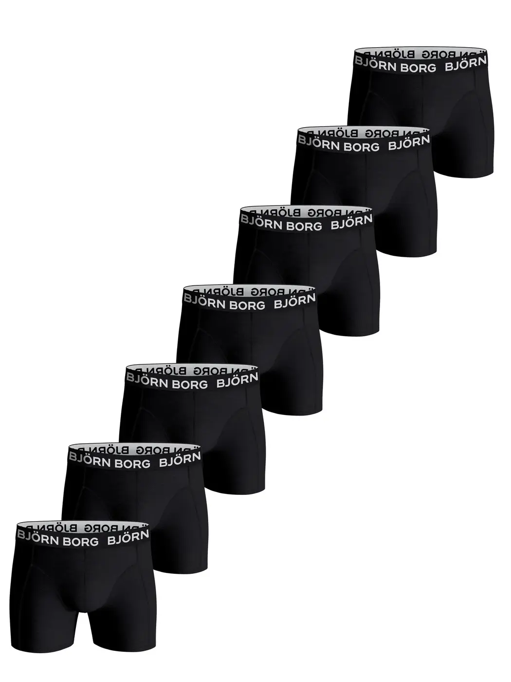 Artikelnr.: HR10000888/10004238-MP001Als je voor comfort gaat en graag een stijlvolle boxershort draagt dan zijn deze Bjorn Borg Boxers perfect voor jou. Deze voordeelpak bevat 7 zwarte shorts met zijn brede bedrukte band waar Bjorn Borg bekend om staat. Ze zijn gemaakt van een mix van 95% premium katoen en 5% elastaan, waardoor ze lekker comfortabel zijn en goed blijven zitten.