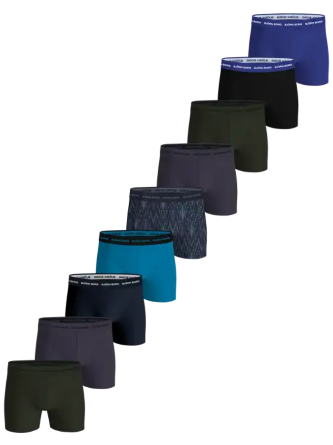 Artikelnr.: HR10005200Als je voor comfort gaat en graag een stijlvolle boxershort draagt dan zijn deze Bjorn Borg Boxers perfect voor jou. Deze voordeelpak bevat 9 verschillende shorts met zijn brede bedrukte band waar Bjorn Borg bekend om staat. Ze zijn gemaakt van een mix van 95% katoen en 5% elastaan, waardoor ze lekker comfortabel zijn en goed blijven zitten.