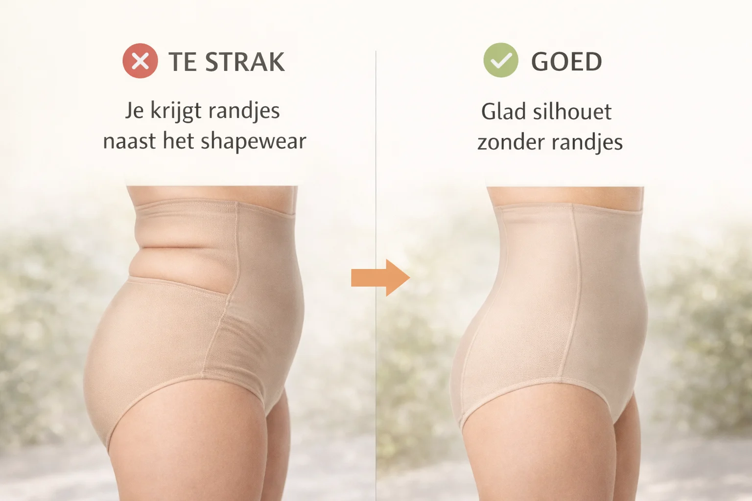 Kort antwoord: shapewear moet strak zitten, maar nooit knellen. Je moet een gladder silhouet zien zonder dat je huid erboven of eronder wordt weggeduwd. Zie je duidelijke randjes? Dan zit het te strak. Veel vrouwen twijfelen hierover. Je wilt ondersteuning en een mooie vorm, maar wel comfortabel blijven bewegen. We leggen je stap voor stap uit waar je op moet letten.