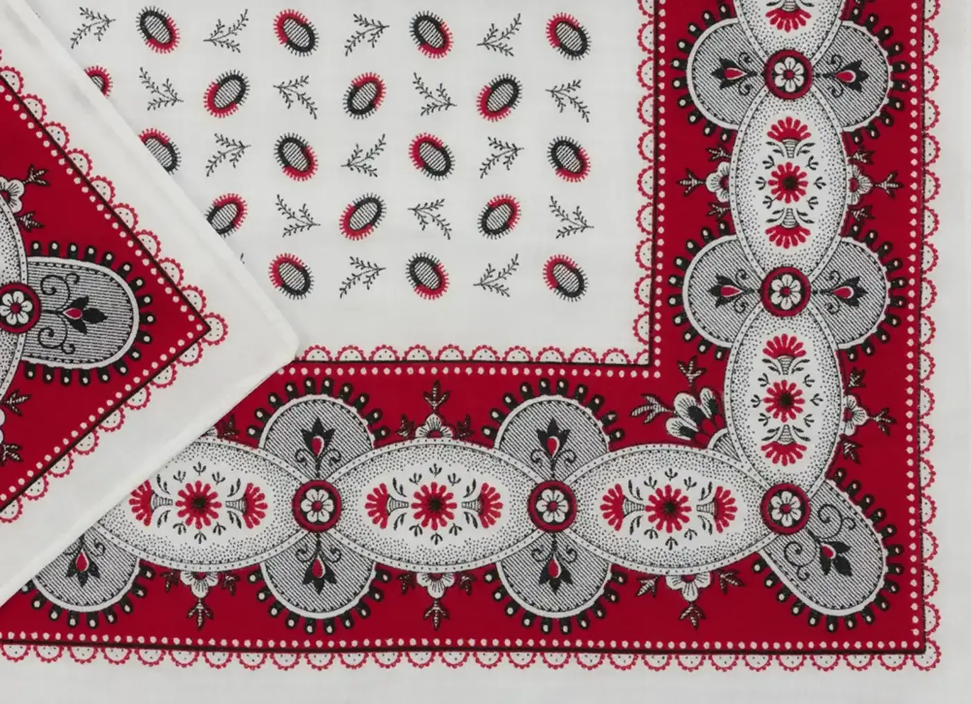 Artikelnr.: HRBZ40100% katoen, hele mooie kwaliteit boerenzakdoek met rood | Wit dessin