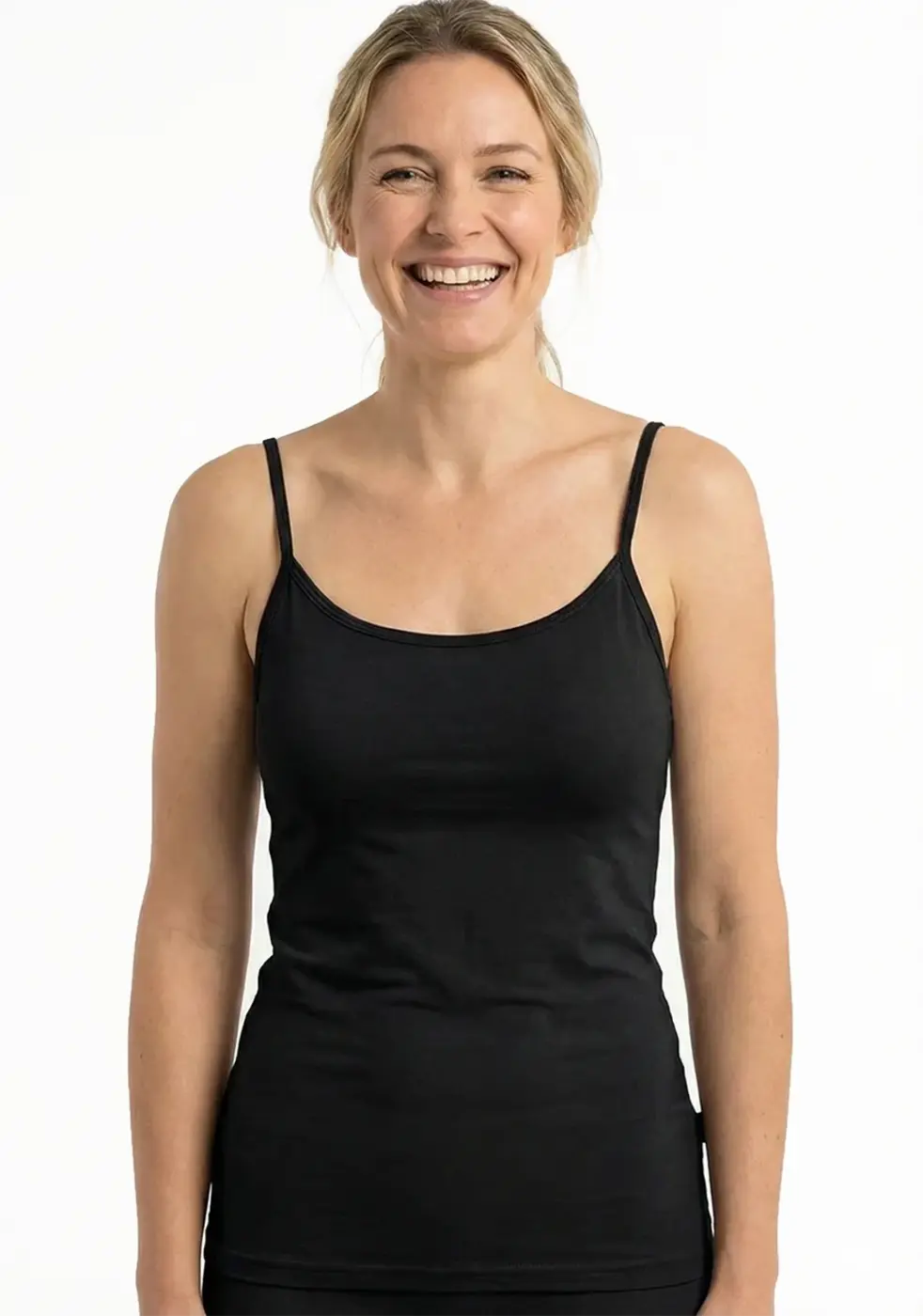 95% Bamboe 5% Elastaan, hele mooie kwaliteit elastische bamboe dames hemd. Bamboe is heerlijk zacht (zachter dan katoen) en daardoor is het een comfortabel en zeer soepel hemdje.