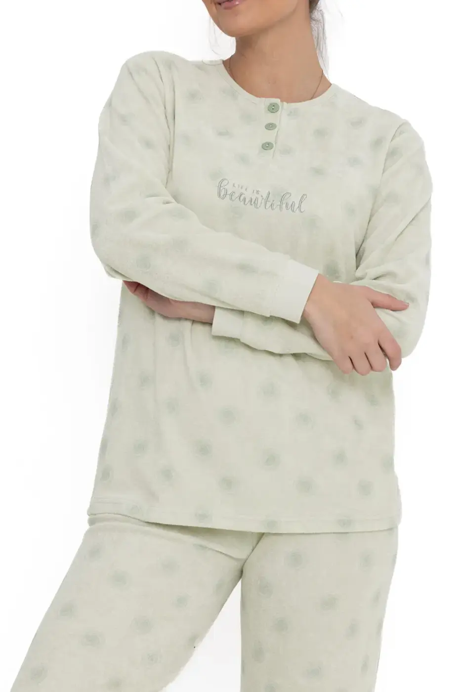 Deze badstof pyjama van Cocodream is precies wat je nodig hebt voor een comfortabele nachtrust. De stof voelt heerlijk zacht aan op de huid en houdt je goed warm, ideaal voor de koudere maanden.