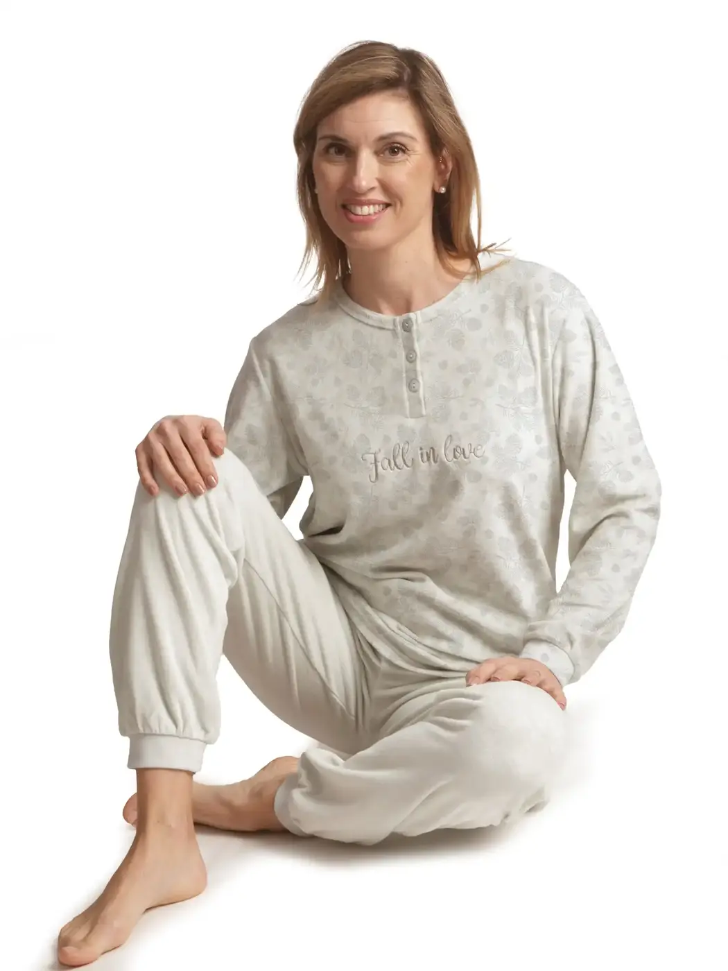 Artikelnr.: DSP65176575% katoen 25% Polyester, een mooie en fijne velours pyjama van Cocodream met een "Fall in love" print