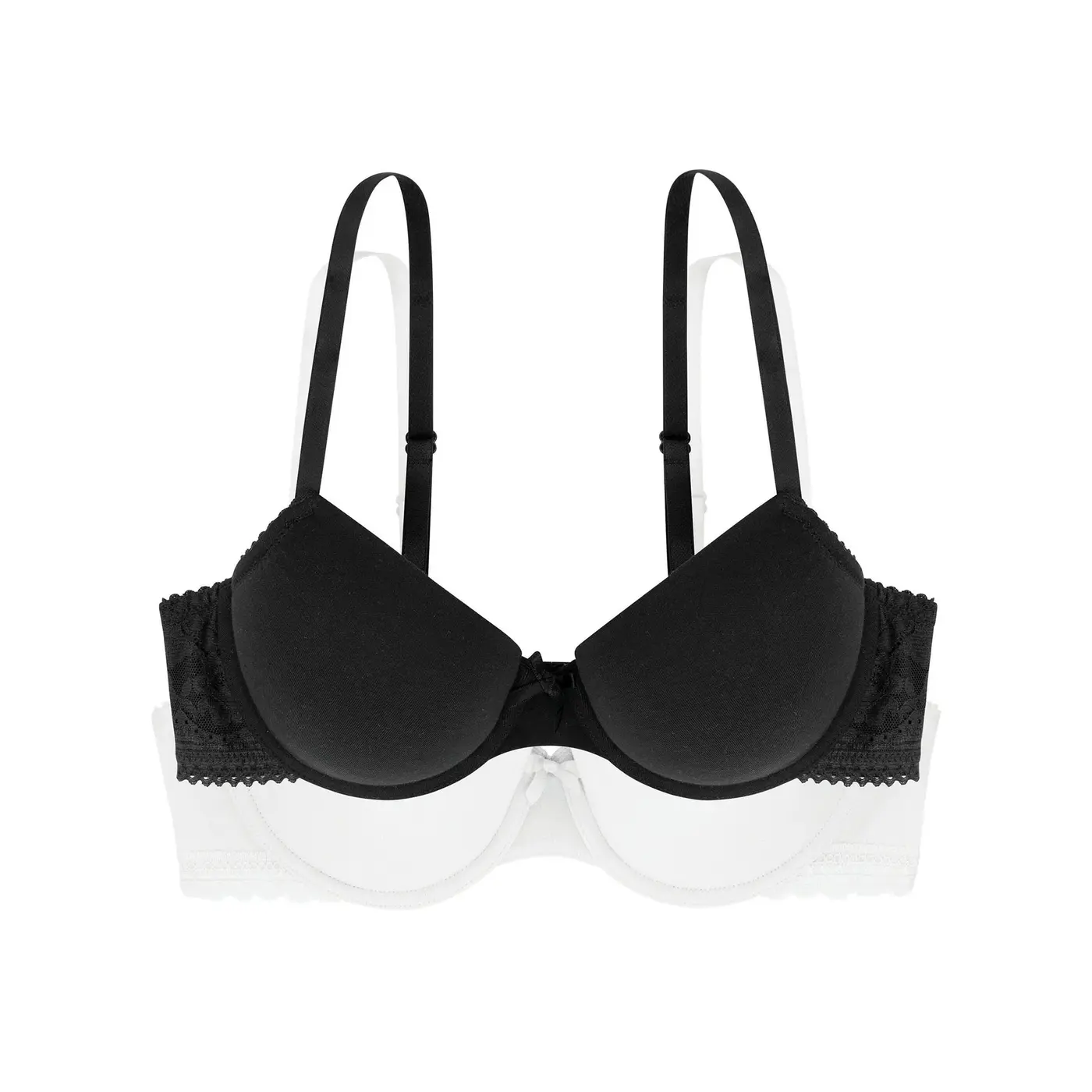 Artikelnr.: D000001CO009-2X0034Met deze twee BH's van Dorina krijg je een comfortabele pasvorm, een goede ondersteuning en mooie gladde looks die niet doorschijnen onder je kleding. Uitgevoerd met 92% katoen, 6% elastaan en 2% polyamide zijn deze BH's perfect voor elke dag. Kies uit 1 witte en 1 zwarte BH per 2-pack en geniet van de uitstekende pasvorm.