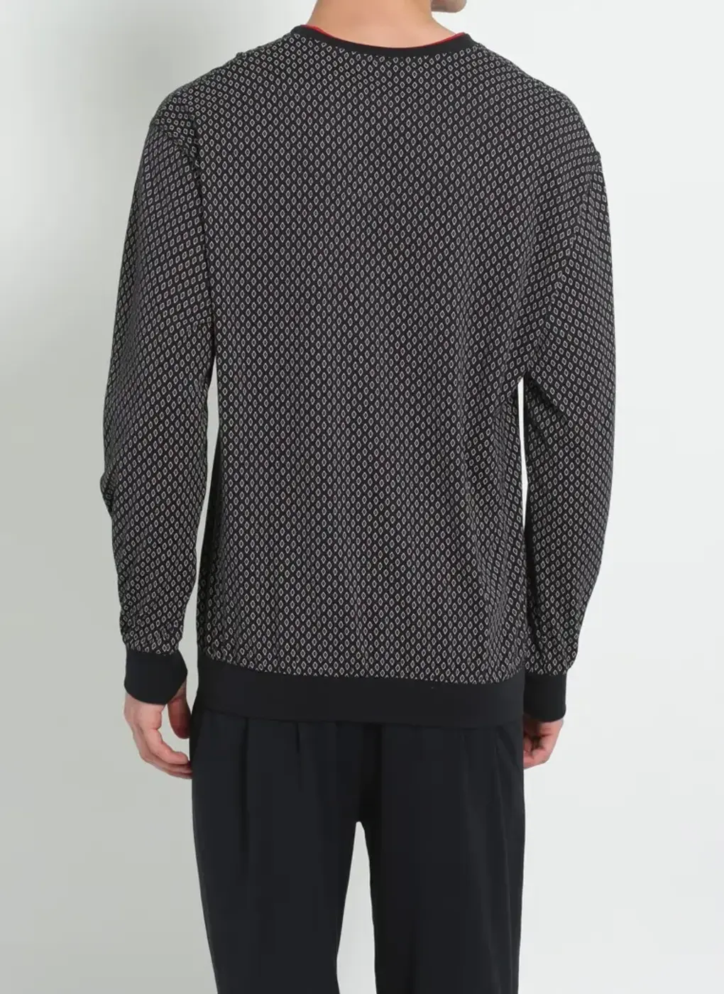 - Met boordjes aan de mouwen, onderkant shirt en aan de broek