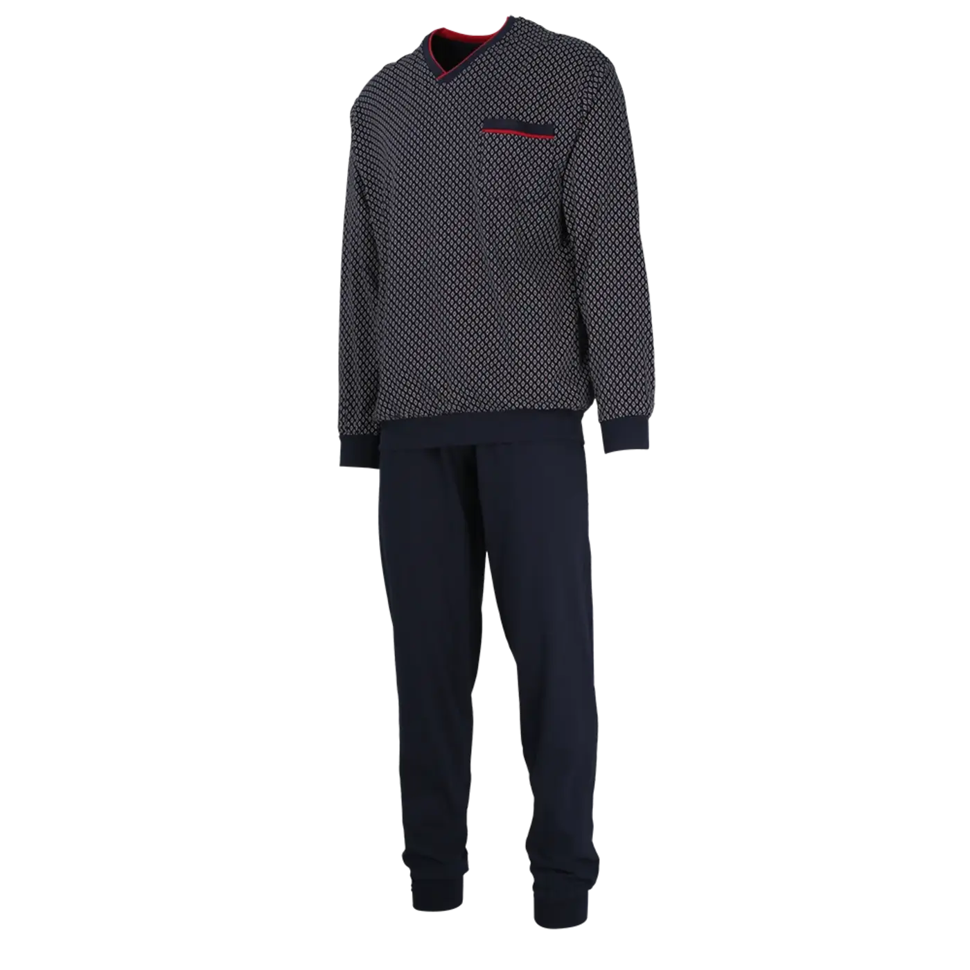Artikelnr.: HRP451381-7013Comfortabele en goede elastisch katoenen heren pyjama van Gotzburg, dit is een echt Duits merk, met een goede Duitse kwaliteit zoals je dat mag verwachten. Door de boordjes aan de broek en de zachte elastische band is dit een fijne pyjama die comfortabel draagt. Goed ademende en fijne zachte elastisch katoenen pyjama die perfect is voor het tussenseizoen, of wanneer je het niet zo snel koud hebt is deze ook fijn voor de winter.