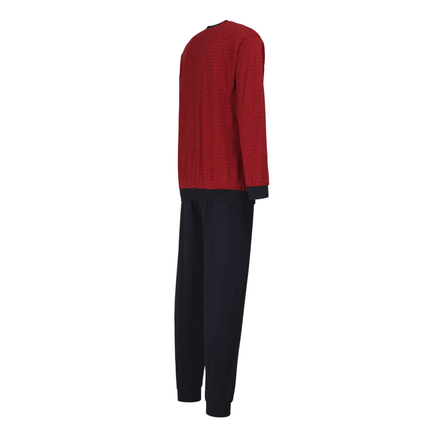 100% katoen, mooie kwaliteit katoenen heren pyjama van Gotzburg in een chique rode print. Een fijne 100% katoenen kwaliteit die stevig is, goed ademend en fijn draagt.