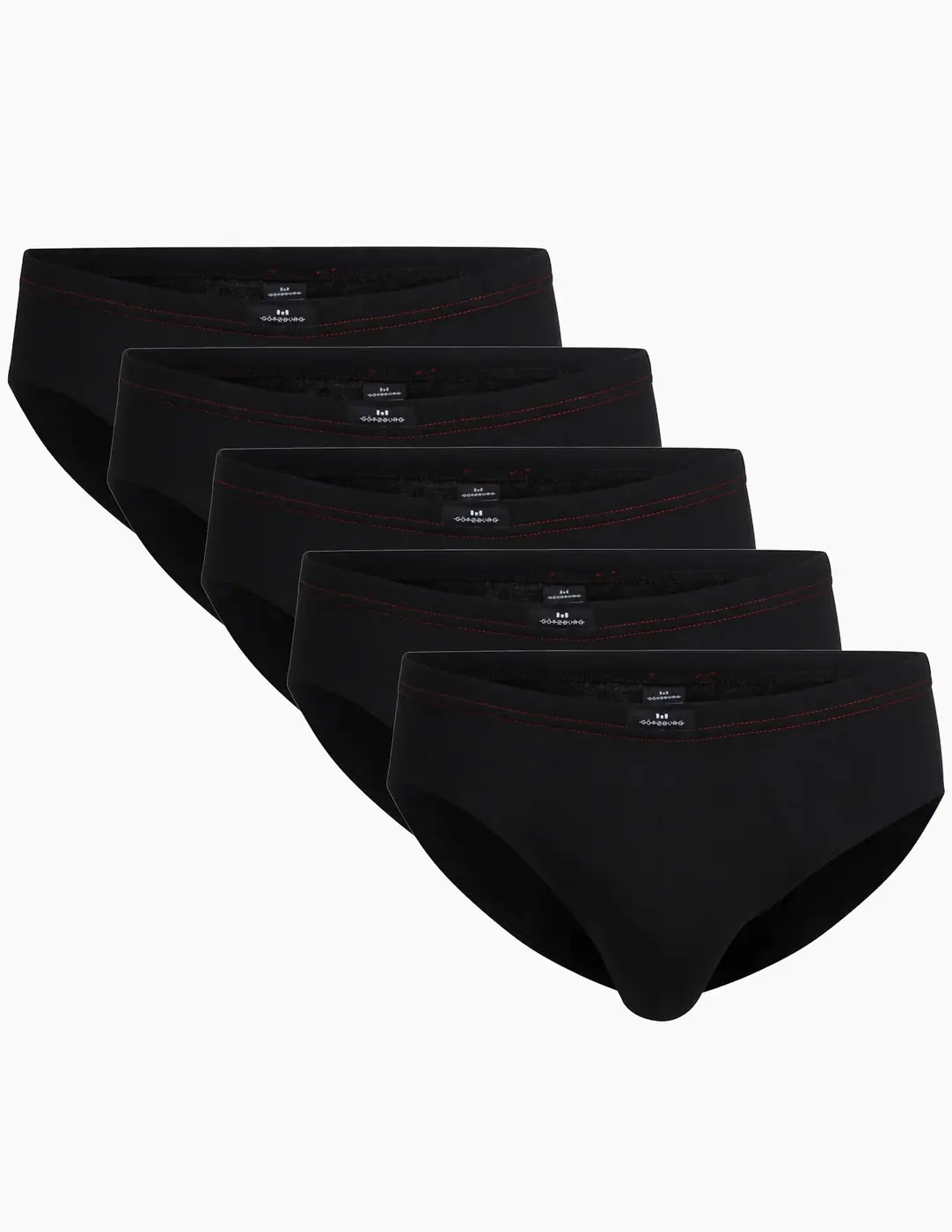 Artikelnr.: HR740921Geef je kledingkast een fijne toevoeging met deze 5-pack Gotzburg heren slips in een zwarte kleur. Gemaakt van 100% fijn katoen, voelen ze heerlijk aan. De elastische band is smal en zacht om je comfort te waarborgen. Krijg 5 stuks voordeel voor één professionele look die nooit verouderd.