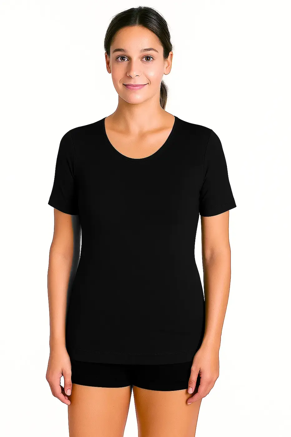 100% katoen, naadloos katoenen dames T-shirt met korte mouw en ronde hals.