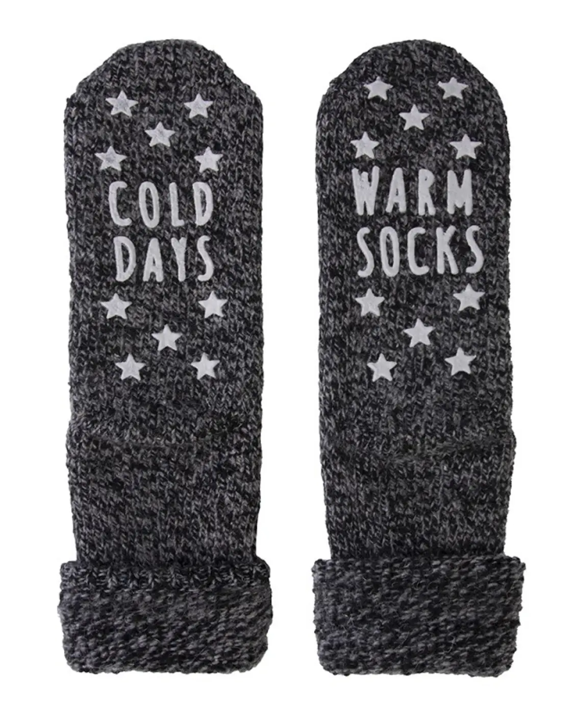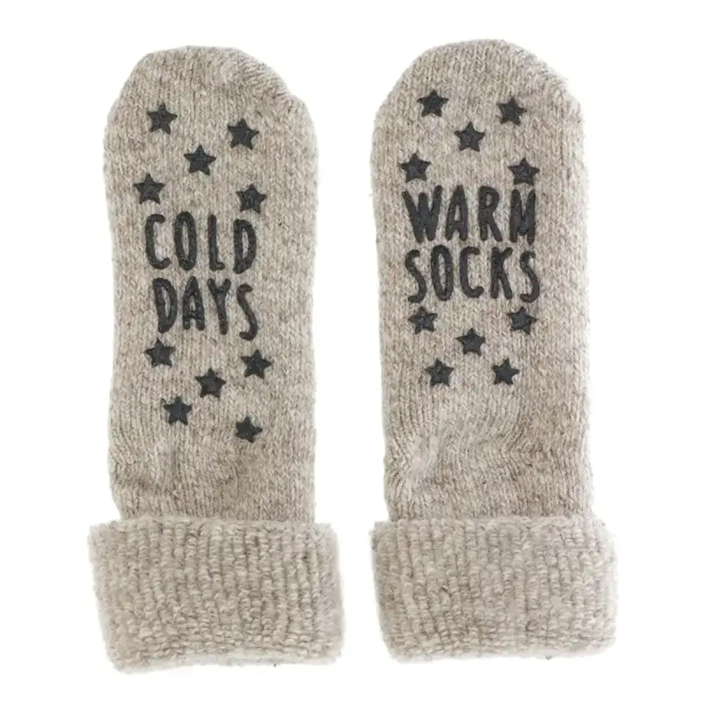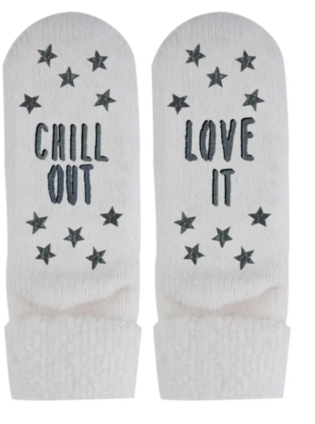 - De siliconen pads hebben een opdruk met op de ene sok ''Cold days'' met sterren en de andere ''Warm socks'' met sterren