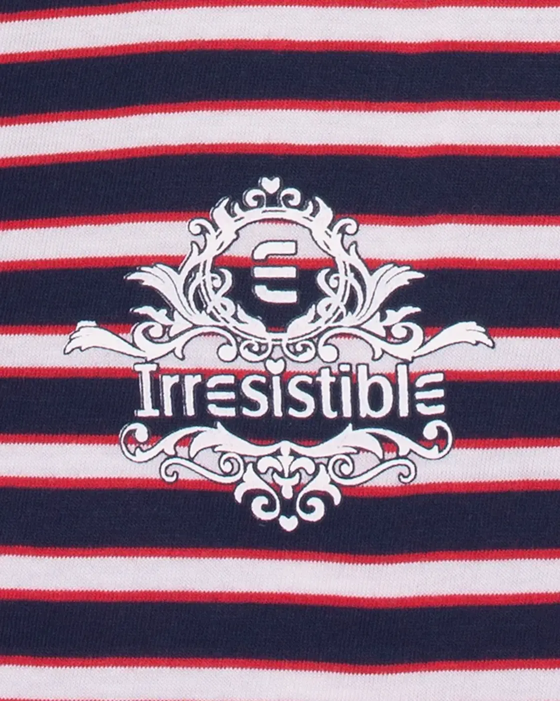 Deze katoenen pyjama van Irresistible is een vrolijke en comfortabele set voor dames. Het shirt is bedrukt met een speelse streep print en heeft boorden aan de mouwen voor een goede pasvorm.