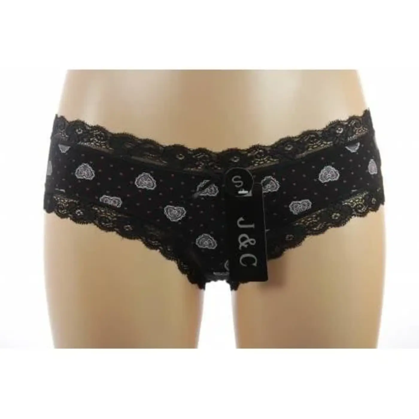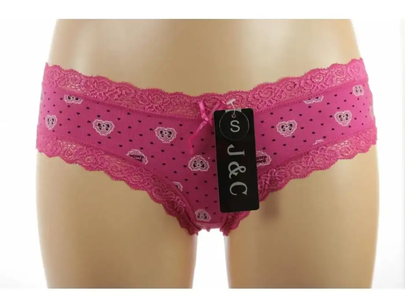 Artikelnr.: DS1602Gemaakt van 95% katoen en 5% elastaan, biedt deze elastische string/hipsters je ultieme comfort. Met hun subtiele kant langs de benen en bovenband en hartjes print, zal je er altijd fashionable uitzien. Daarbij loopt deze aan de voorkant als een hipster en de achterkant als string model.