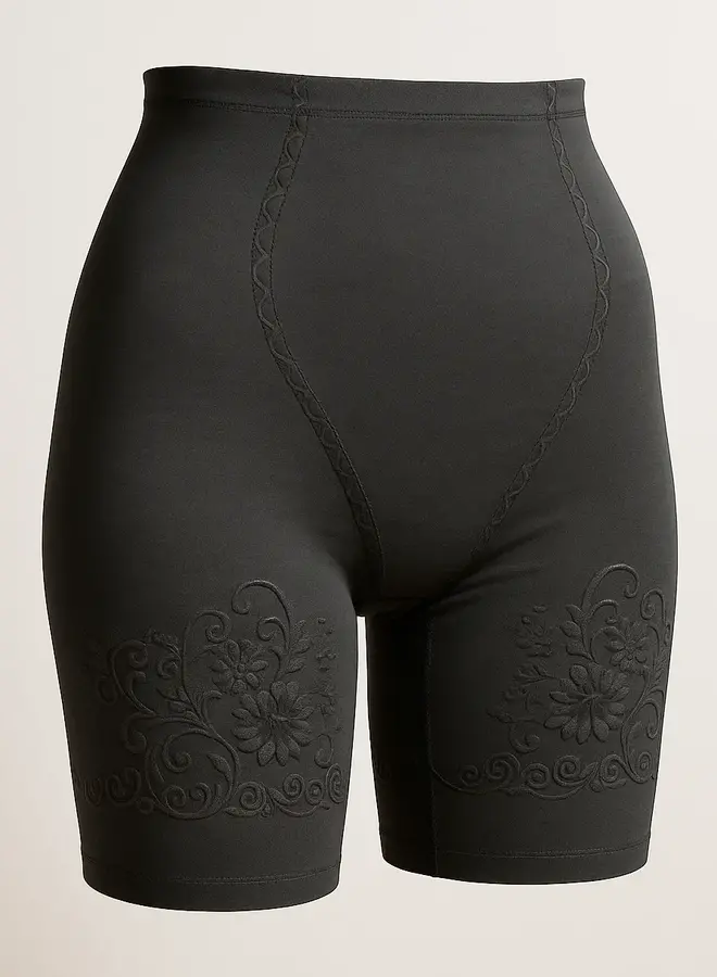 90% polyamide 10% elastaan, correctie short met correctie met lange pijpjes van J&C met een hogere brede tailleband
