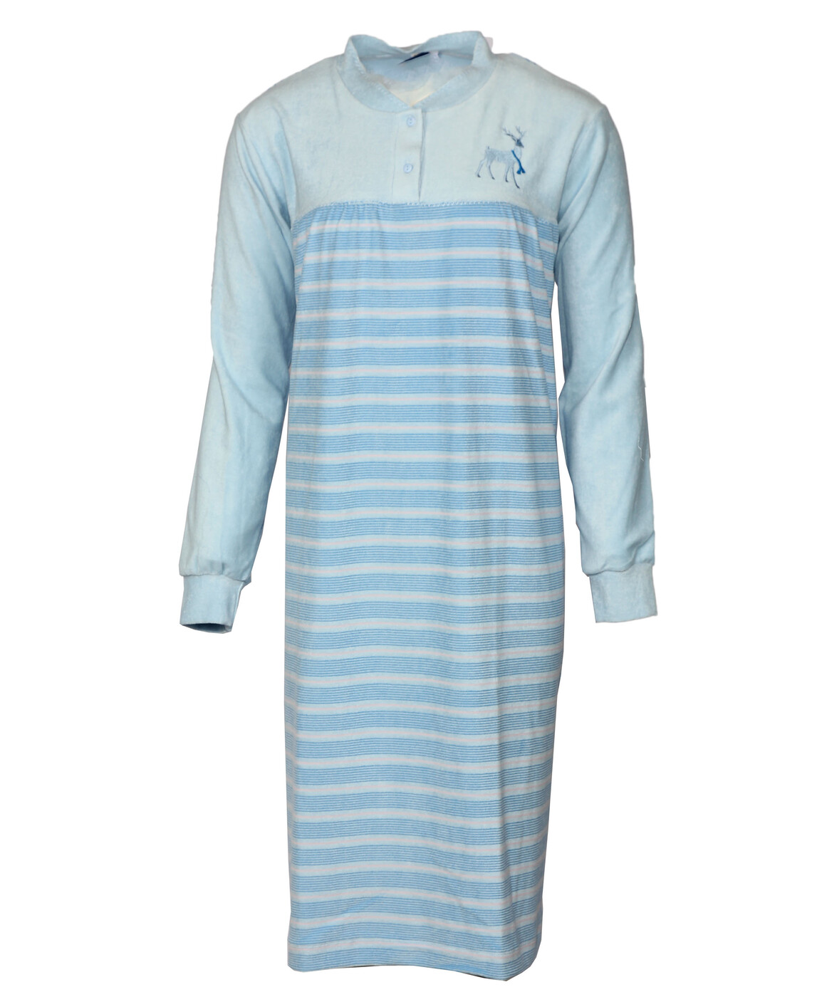 Lunatex badstof nachthemd dames - Lange mouw - Lichtblauw