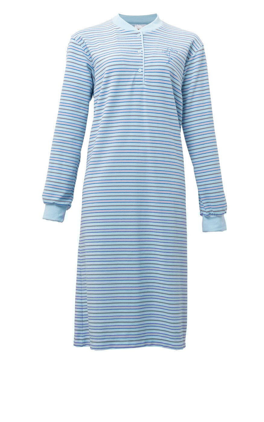 Artikelnr.: DSN22-4131-5075% katoen, 25% Polyester leuk nachthemd met lange mouwen van Lunatex ineen lichtblauwe kleur met streep print