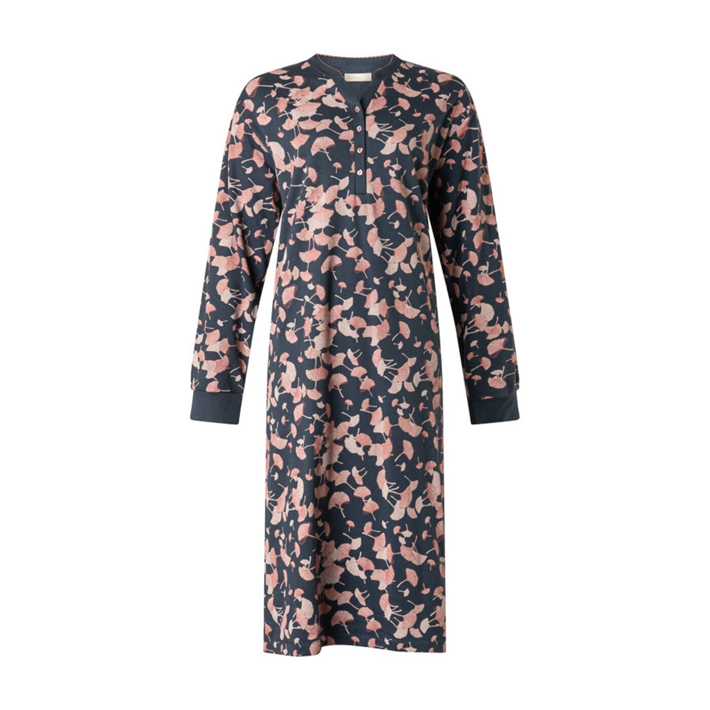 Artikelnr.: DSN-22-415375% Katoen, 25% Polyester: Comfortabele en lekker warme dames nachthemd van Lunatex in een donkerblauwe kleur met leuke print