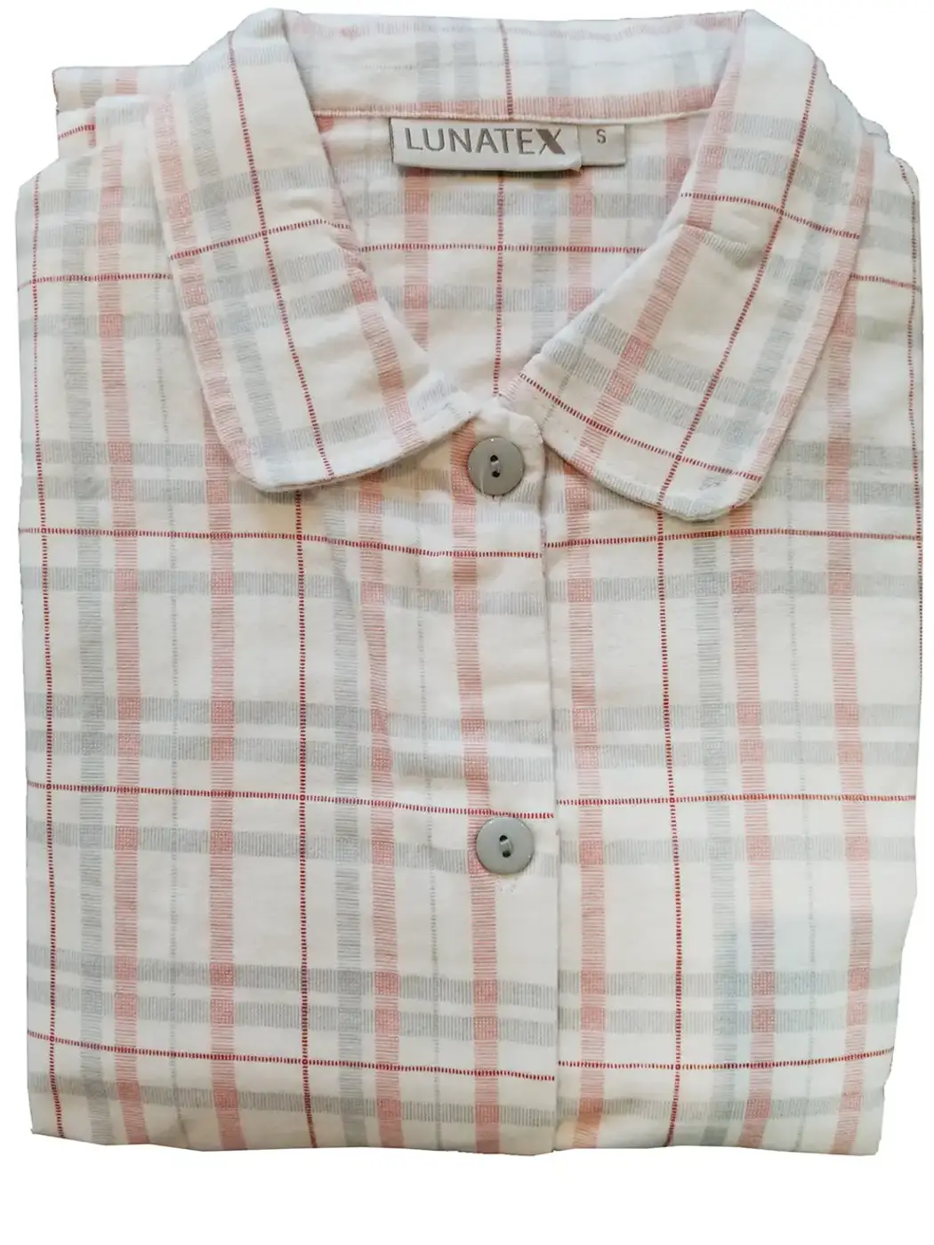Artikelnr.: DSP641776100% katoen, een mooie kwaliteit en fijne flanel pyjama van Lunatex met een roze of zwarte streep kleur