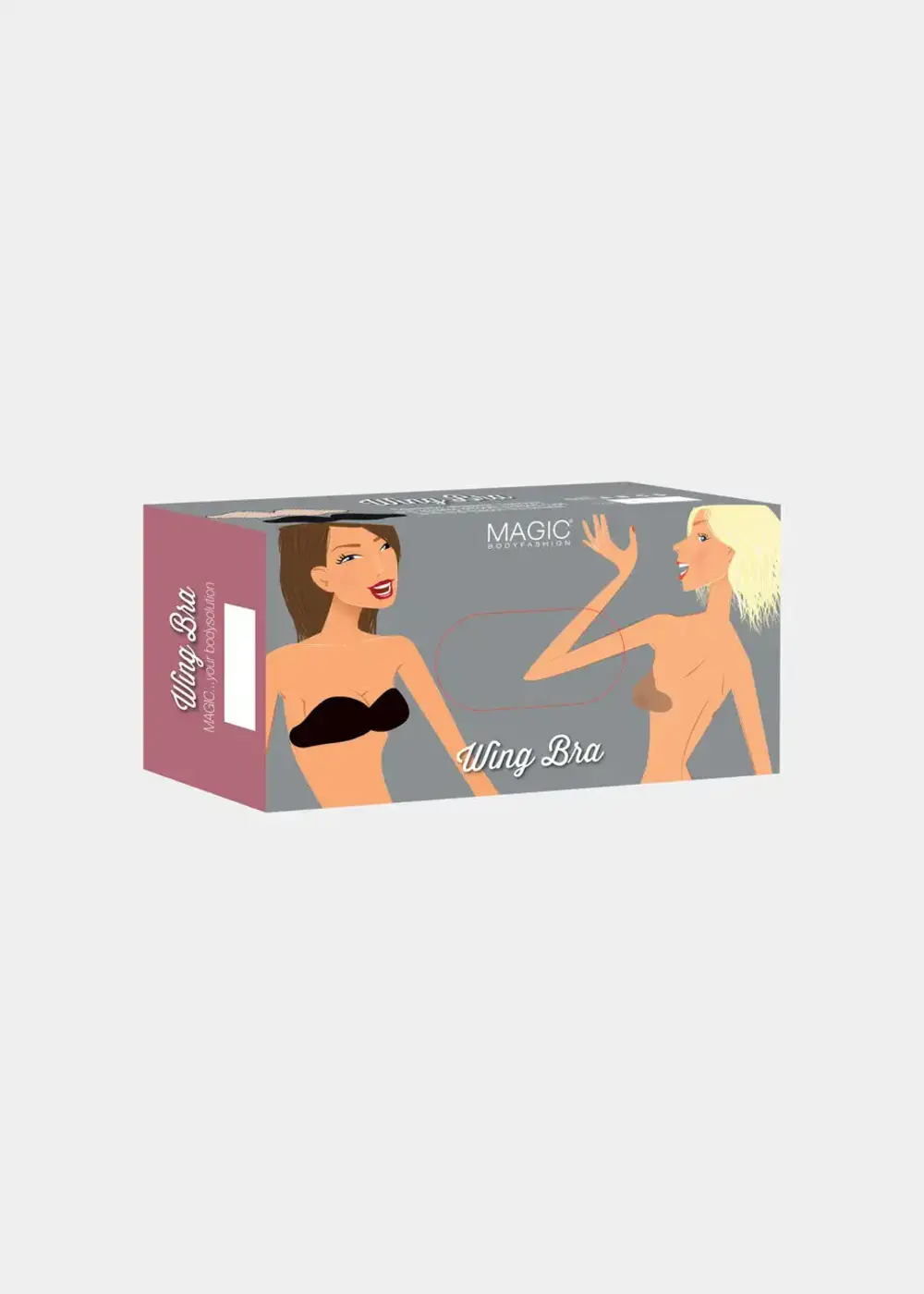 Artikelnr.: BH50WADe MAGIC Wing Bra is de perfecte bh zonder rugbanden voor wie op zoek is naar een strapless bh met lichte push-up. De Wing Bra heeft vleugels aan de zijkanten voor extra ondersteuning en biedt comfortabele, naadloze cups voor een prachtig decolleté. Met deze bh heb je geen last meer van bandjes of een blote rug, dankzij het balconette model en de strapless pasvorm. Je kunt de bh meerdere keren dragen als je hem goed verzorgt door hem te wassen in lauw water en in de open lucht te laten drogen.