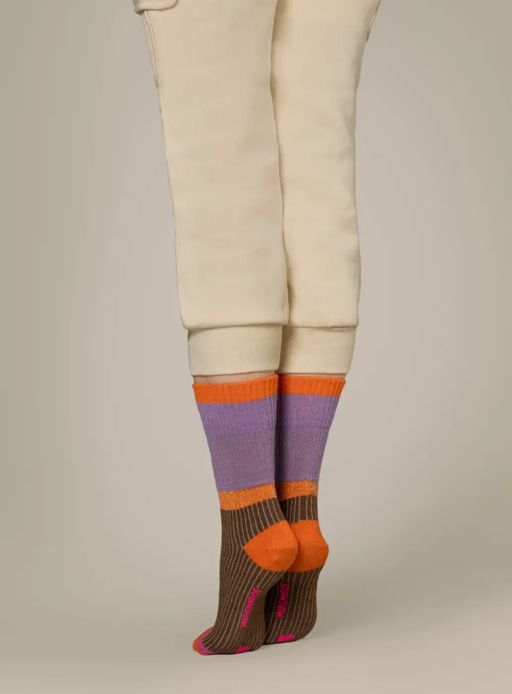 30% wol, 30% viscose, 30% polyamide, 5% kasjmier, 3% elastaan, 2% metallic fibre: mooie wollen dames sokken van Marcmarcs.