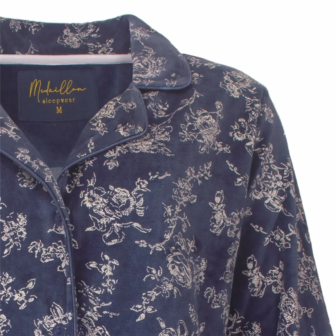 Medaillion dames velours pyjama doorknoop - Winter Flower