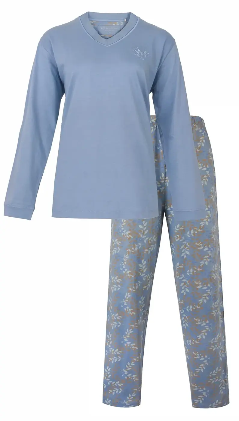 Medaillion katoenen dames pyjama lange mouw - Blue