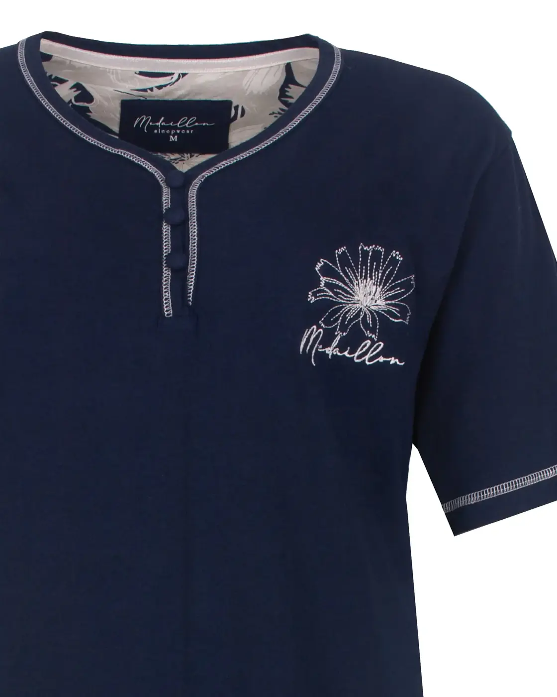 Medaillon dames nachthemd korte mouw - "Bloem"