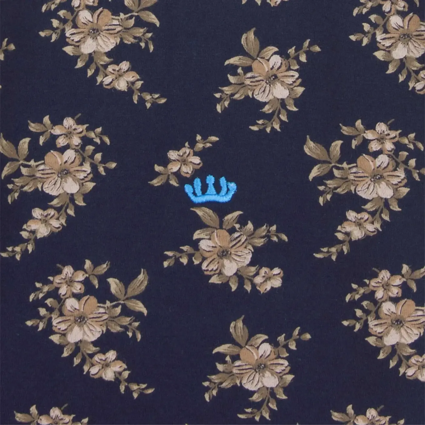 - Shirtkleur: donkerblauw met donkerblauwe bloemenprint