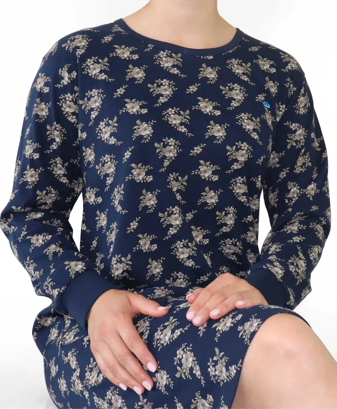 ✓ Donkerblauw nachthemd met subtiele bloemenprint