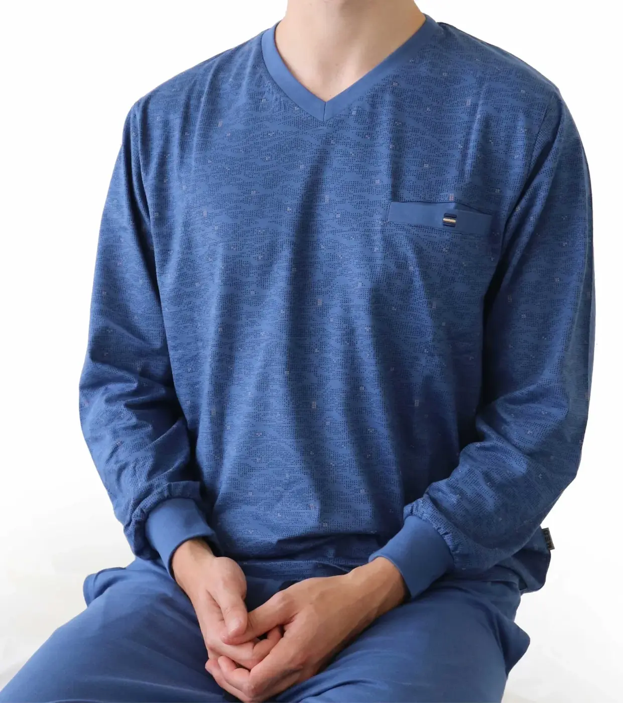 M.E.Q. Heren pyjama lange mouwen katoen - Winter blue