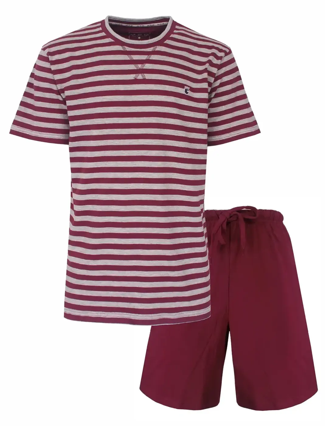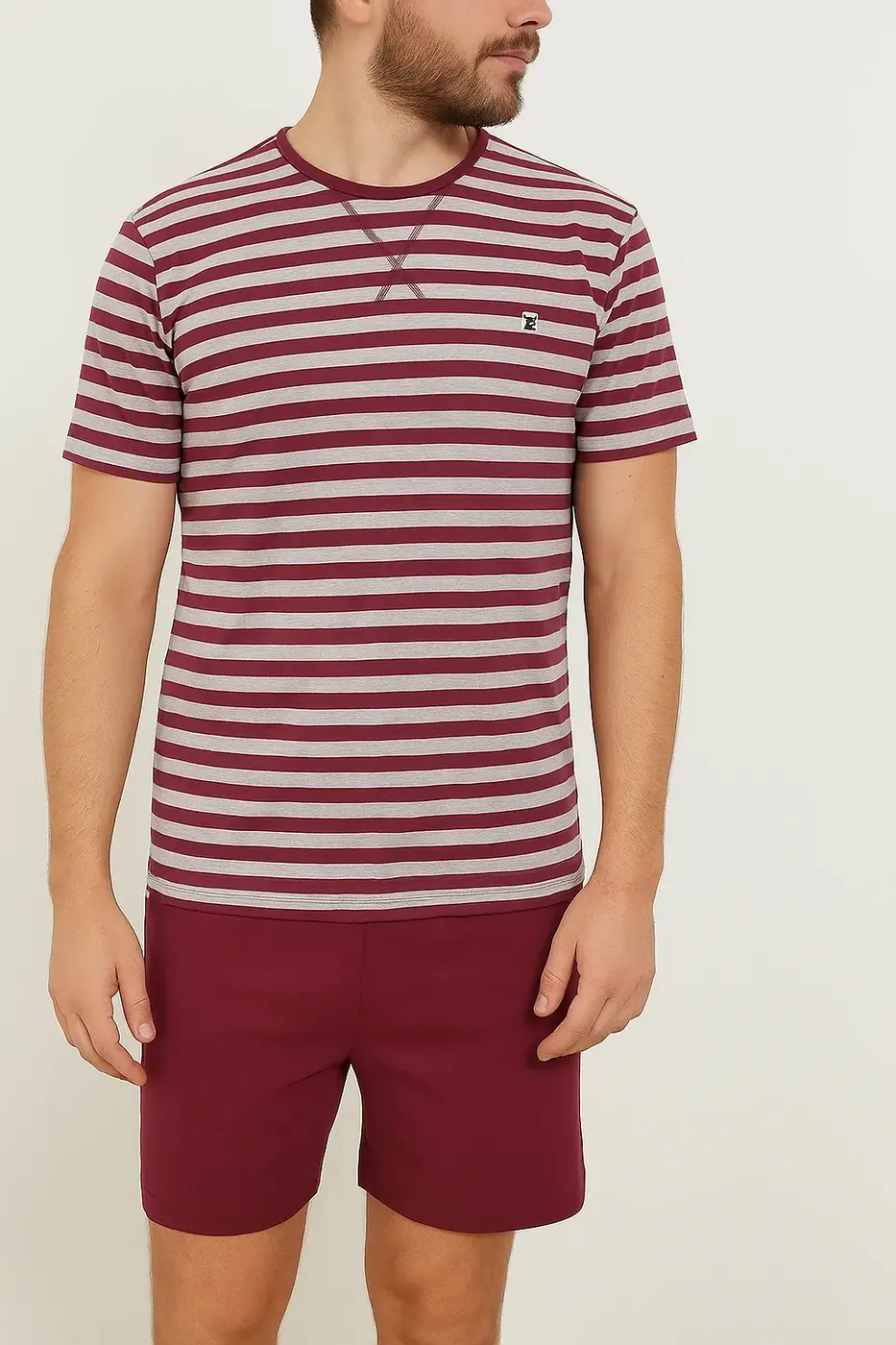 M.E.Q. Heren shortama katoen - ronde -hals - Rode streep