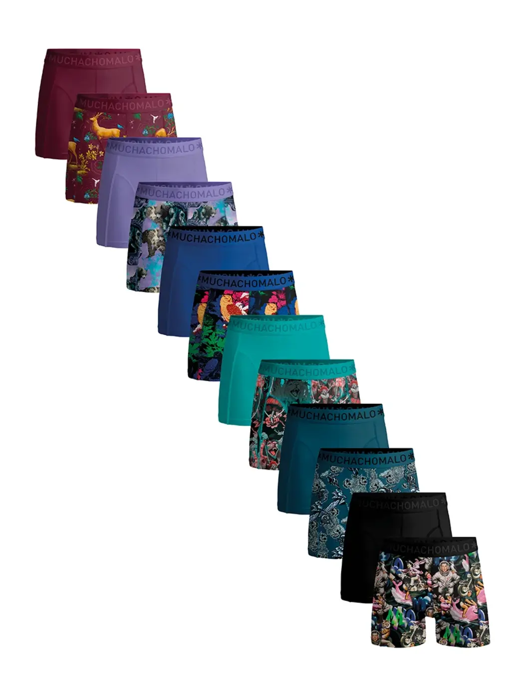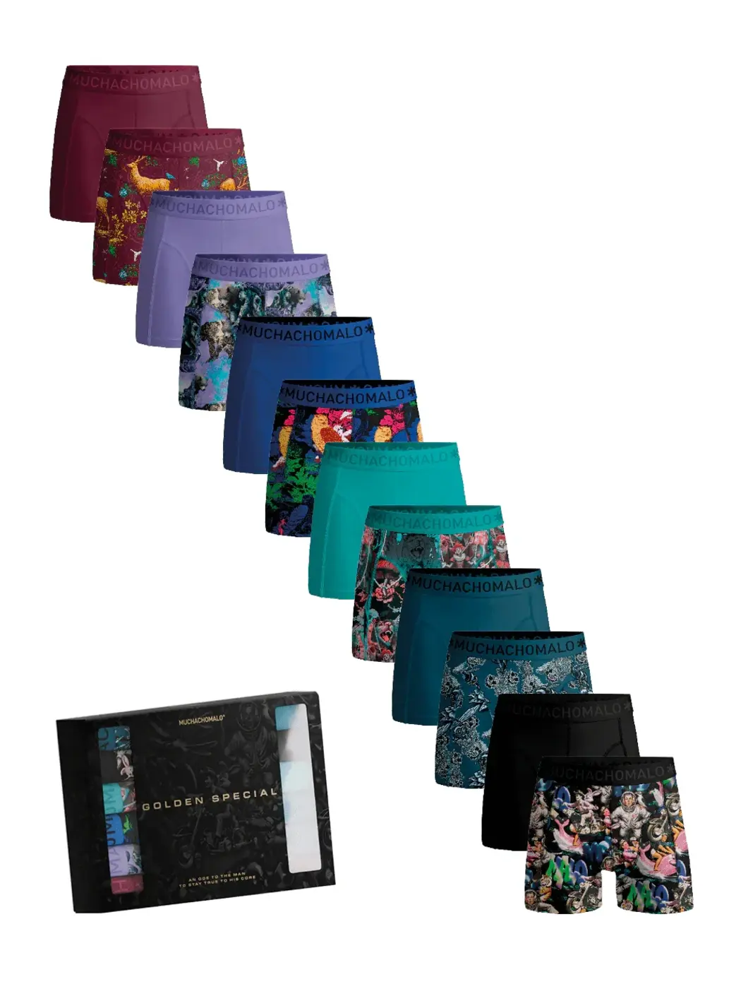 De brede elastische tailleband met het herkenbare Muchachomalo-logo geeft de shorts een stoere look. De pasvorm blijft de hele dag goed zitten, zonder te knellen of op te kruipen. Deze voordeelset is perfect voor wie houdt van variatie en een ruime voorraad ondergoed wil hebben.