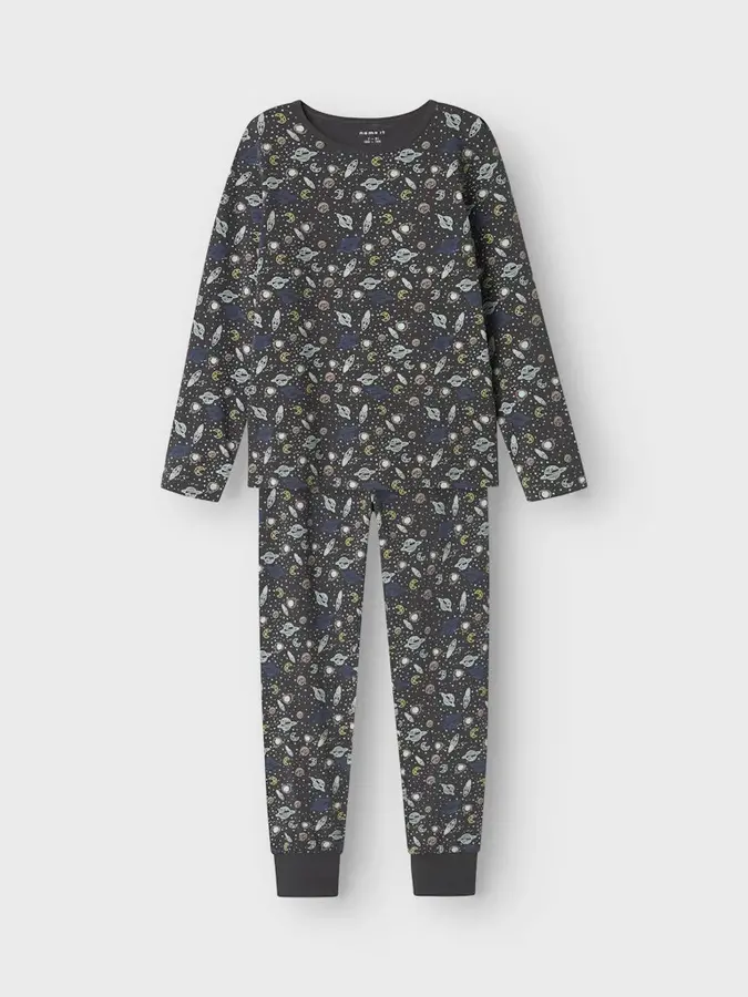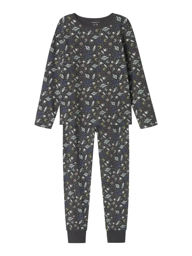 Artikelnr.: JSP13241994Comfortabele en stoere jongens pyjama van Name-it, met een mooie space print. Deze pyjama gemaakt van een organisch katoenen kwaliteit wat ervoor zorgt dat je een fijne en huidvriendelijke stof draagt die ook nog goed een stuk milieuvriendelijker is, perfect als pyjama toch.