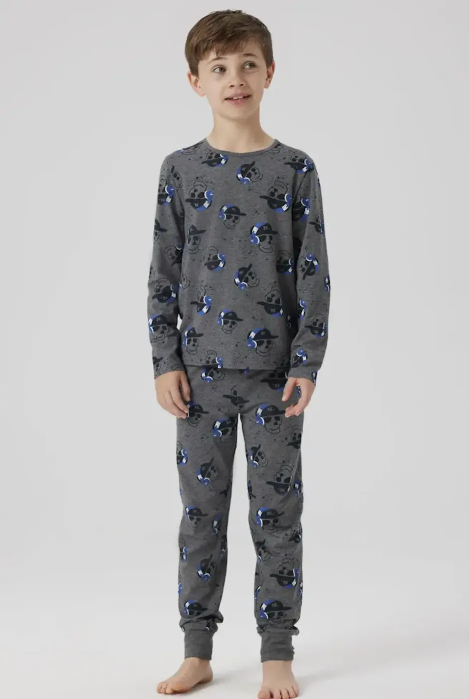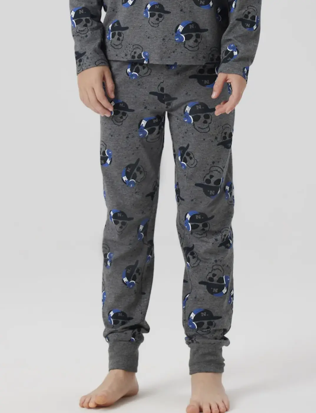 - donkergrijze pyjamashirt met allover ''Skulls' print