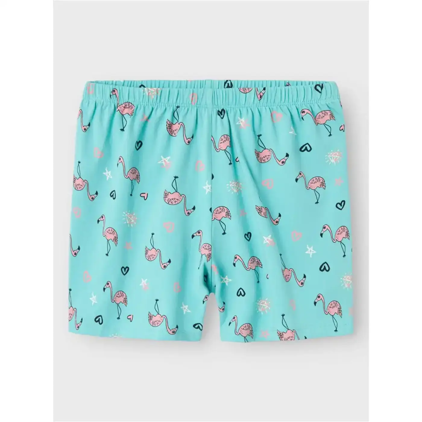 95% biologisch katoen, 5% Elastaan: Leuke katoenen meisjes shortama van Name-it in een vrolijke zomerse Flamingo print.