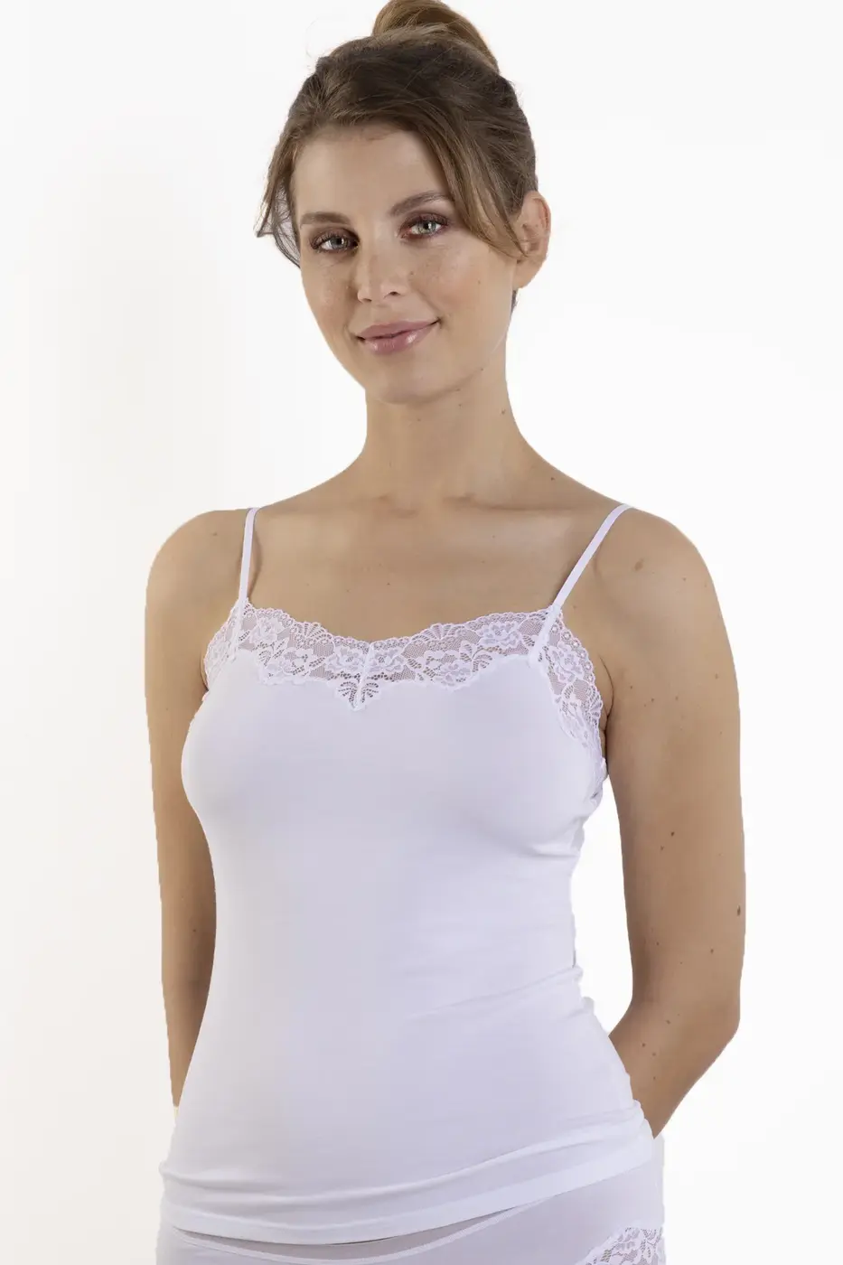 95% Modal 5% Elastaan, mooie kwaliteit dames hemdje met kant en spaghettibandjes.