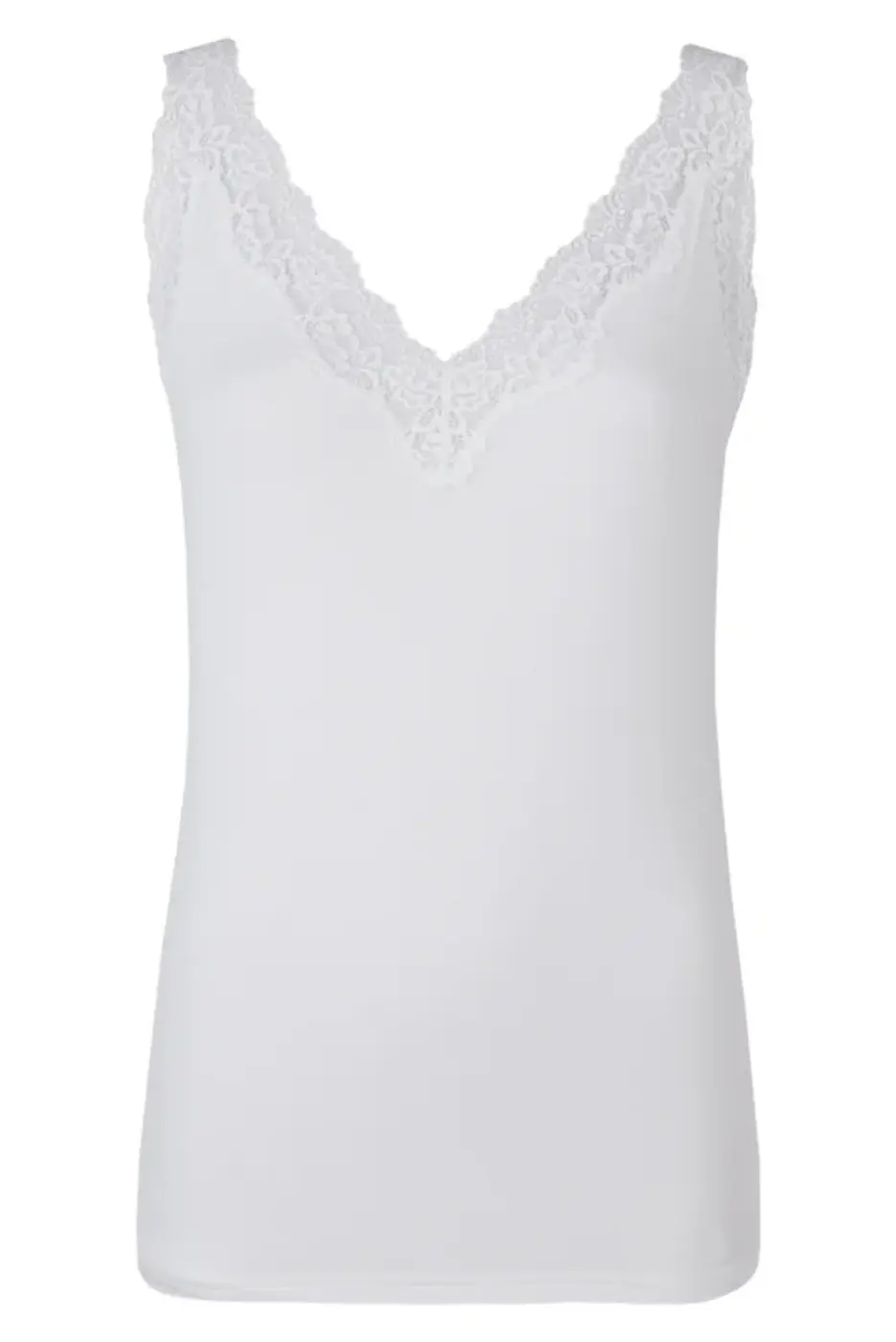 Artikelnr.: DS16-400-648Het hemd is gemaakt van 95% modal en 5% elastaan voor het perfecte draaggemak. Het voorkant en de schouderbandjes zijn afgewerkt met kant om jouw outfit net dat beetje extra te geven. De achterkant, armgaten en onderzijde zijn afgewerkt met een mooi glansbandje voor een subtiel stijlvolle touch.