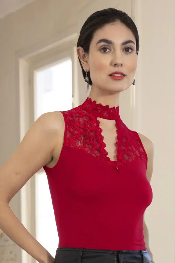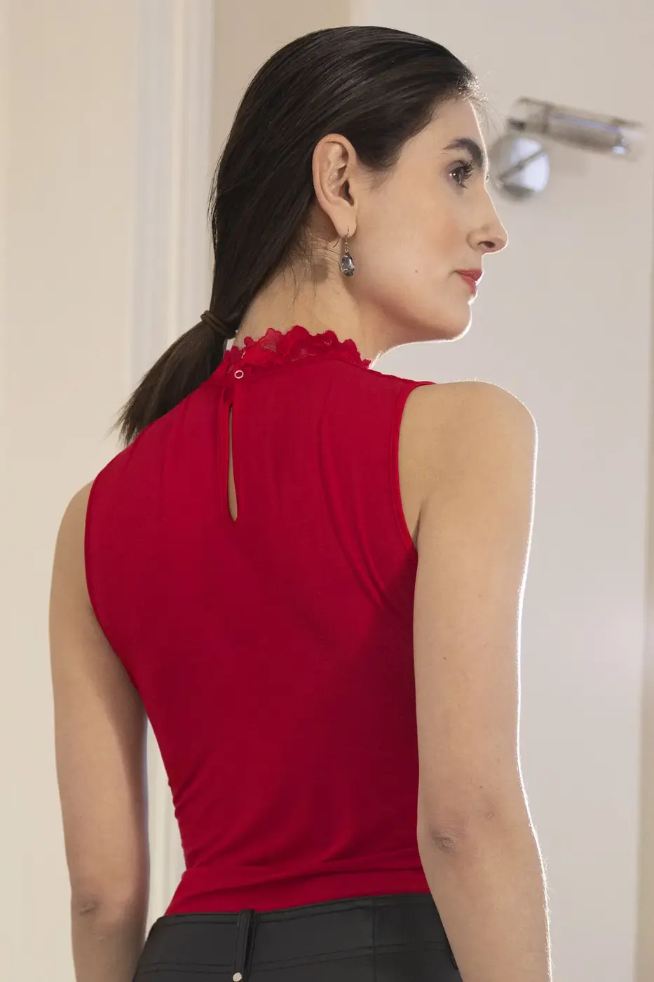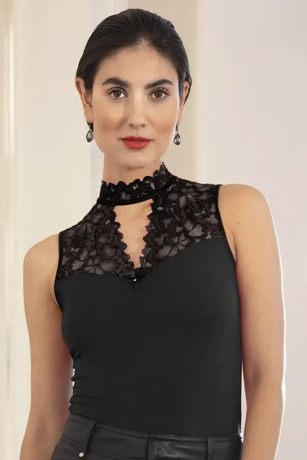 Artikelnr.: DS16-390-204Met een kanten hals in een hoger model oogt deze top chique. Het zorgt niet alleen voor een vleugje klasse, maar ook voor ultiem draagcomfort. Met de chique kanten afwerking zorg jij voor een mooie look