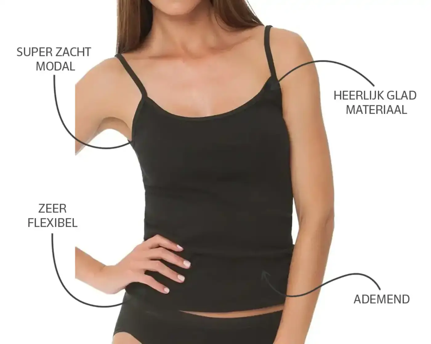 95% micro-modal 5% elastaan, hele mooie kwaliteit modal dames hemdje. Modal is een van onze favoriete stoffen (fijner dan katoen vinden wij). Het is lekker zacht, glad en milieuvriendelijk. Het neemt zeer goed vocht op, waardoor het niet plakkerig zal aanvoelen. Doordat is gemaakt is van beukenbomen is het een milieuvriendelijke stof.
