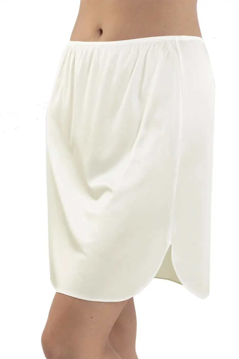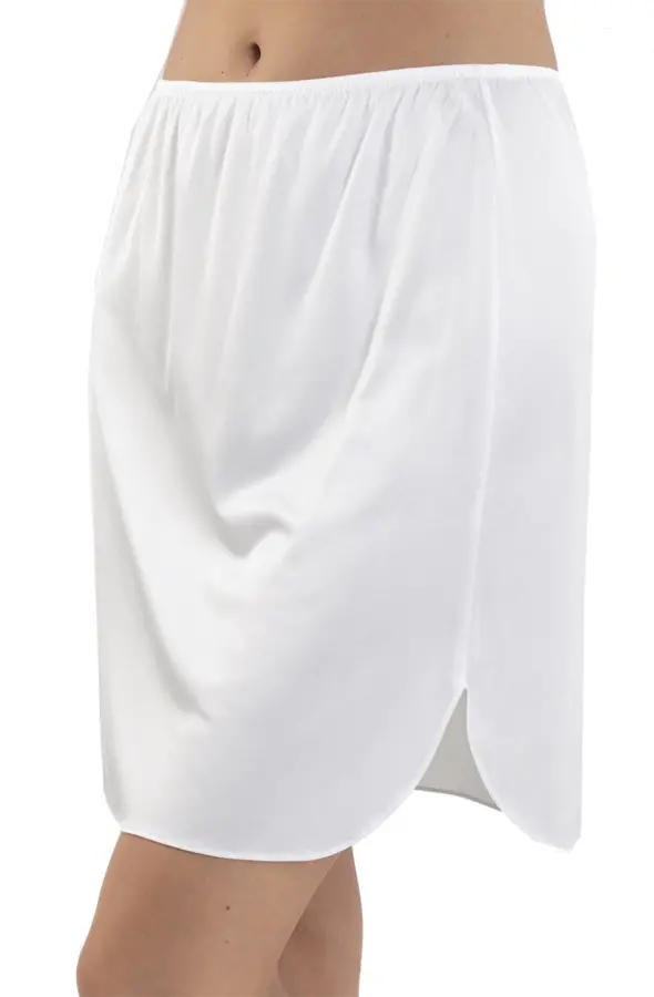 Artikelnr.: DS22-272-111Jouw garderobe verrijken met de prachtige Nina von C Onderrok! Deze elegante onderrok is gemaakt van een zachte viscose stof, die ook ademend is voor extra comfort. De rok is 50cm lange en heeft een plank elastische rand bovenaan, voor een perfecte pasvorm. Met twee geplooide splitjes aan de onderzijde geeft het je net dat extra beetje elegantie. Perfect om te dragen als een discrete laag onder jouw kleding!