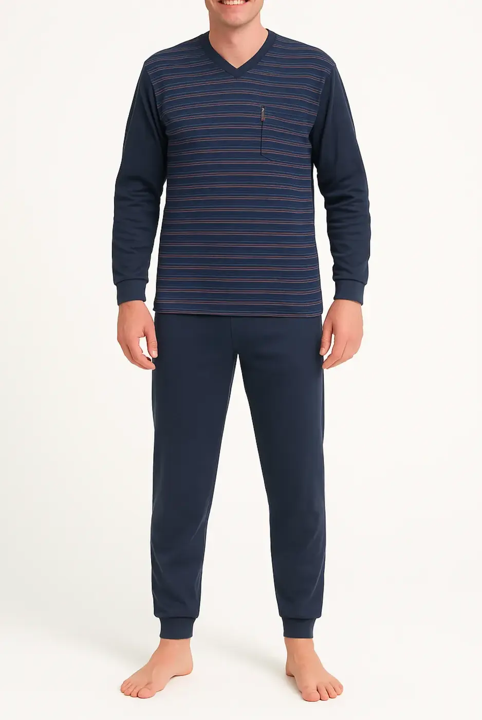 Deze badstof pyjama van Outfitter is perfect voor heren die houden van comfort en warmte. De zachte stof voelt prettig aan op de huid en is ideaal voor frisse nachten of luie ochtenden.