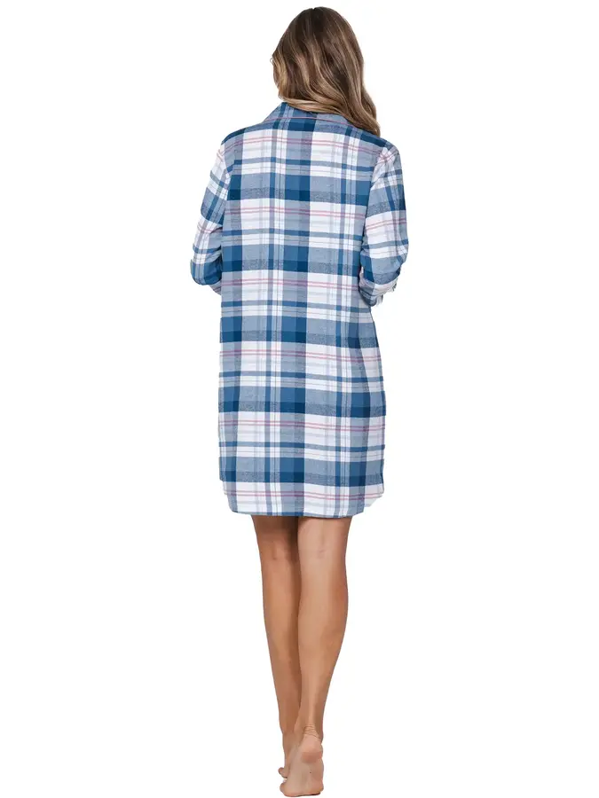 Pastunette dames nachthemd Flanel met knoopsluiting- Blauw