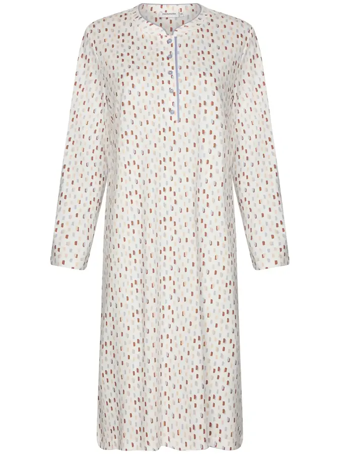 Het nachthemd heeft lange mouwen en een ronde hals, wat hem extra geschikt maakt voor koudere nachten of een relaxte ochtend. De print en kleur maken het geheel mooi afgewerkt, zonder te opvallend te zijn.