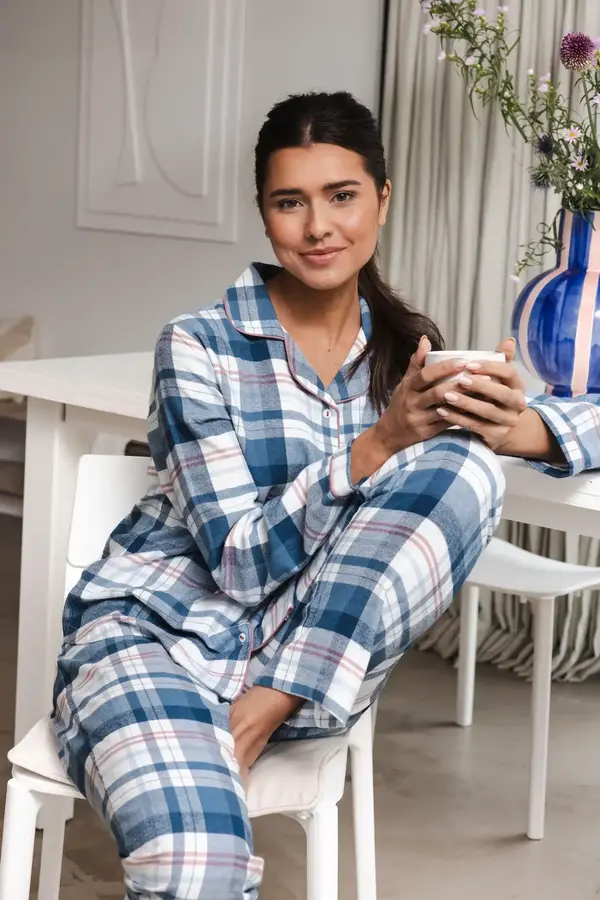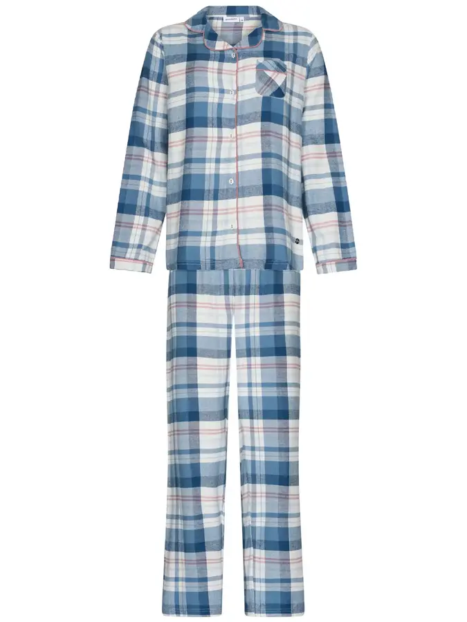 Pastunette Dames Pyjama Flanel met knoopsluiting - Blauw